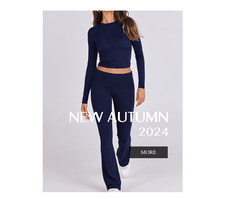 Diyun 유럽과 미국 여성 의류 아마존 국경 2024 봄과 여름 대외 무역 캐주얼 단색 슬림 긴 소매 니트 바지 세트스토어 가기