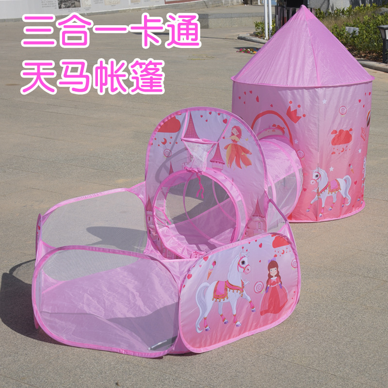 야외 실내 3 대 1 터널 유르트 볼 풀이있는 천마 텐트 어린이 놀이 집스토어 가기
