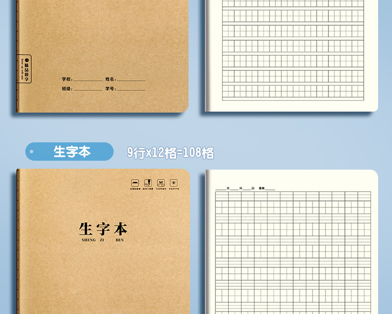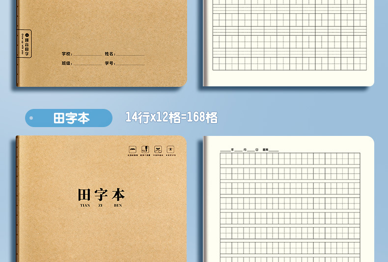 병음 Tian Ziben cowhide 16K 초등학교 Tian Zige 서예 연습 연습 책 하드 펜 병음 책 초등학교 1 학년 및 2 학년