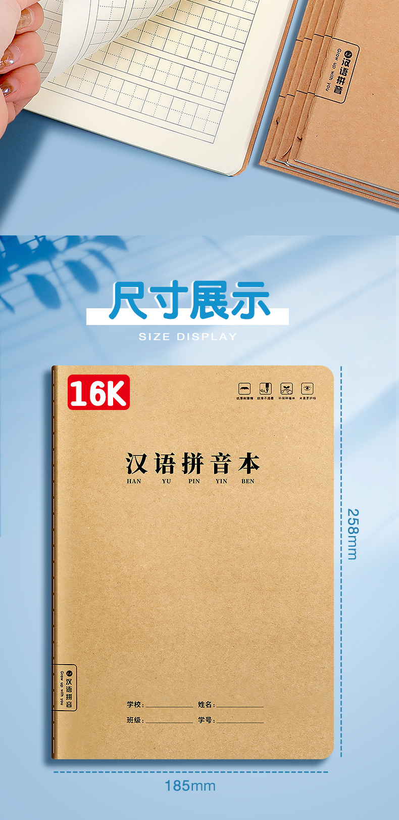 병음 Tian Ziben cowhide 16K 초등학교 Tian Zige 서예 연습 연습 책 하드 펜 병음 책 초등학교 1 학년 및 2 학년스토어 가기