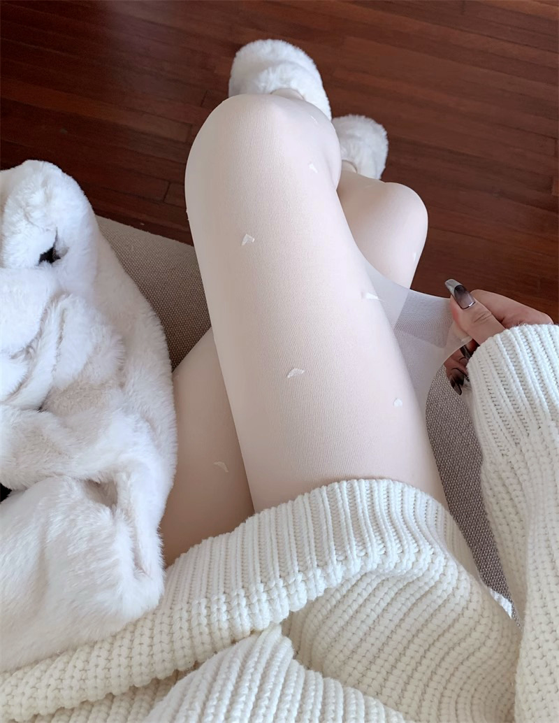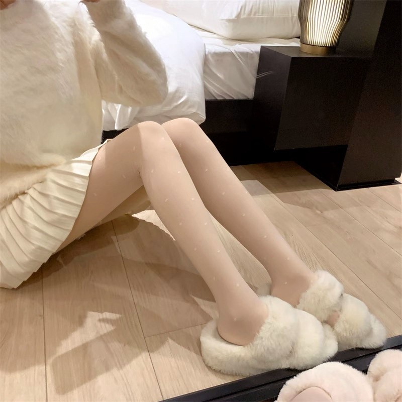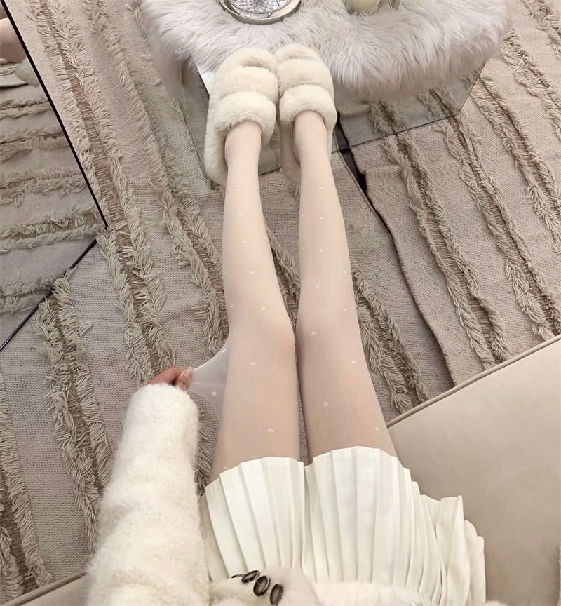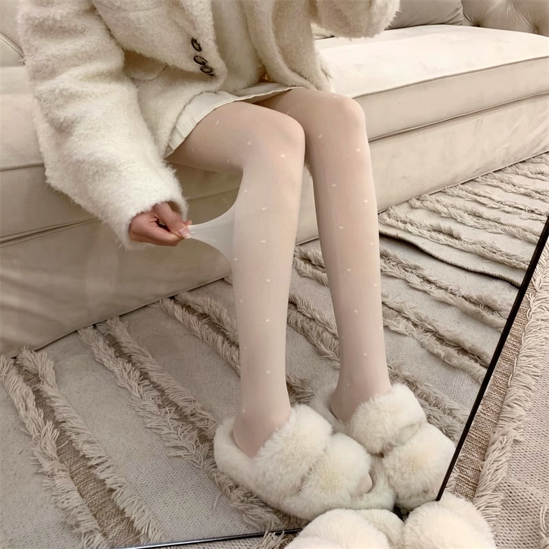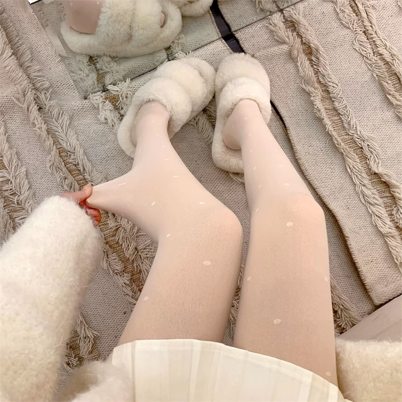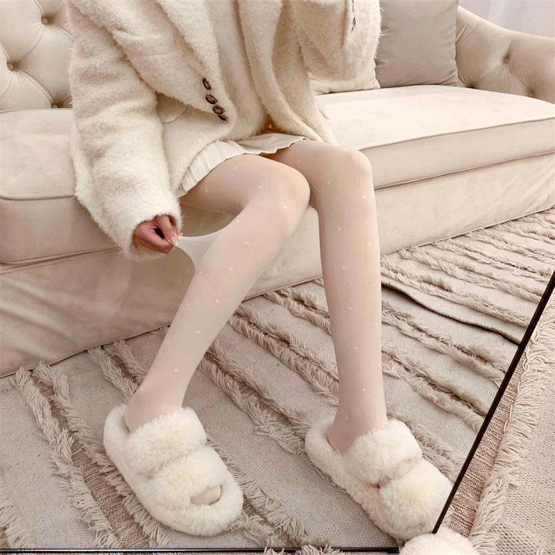 흰색 폴카 도트 실크 스타킹 두꺼운 기모 더블 레이어 분리 가능한 러브 도트 순수 우유 화이트 섹시한 가을과 겨울 팬티 스타킹