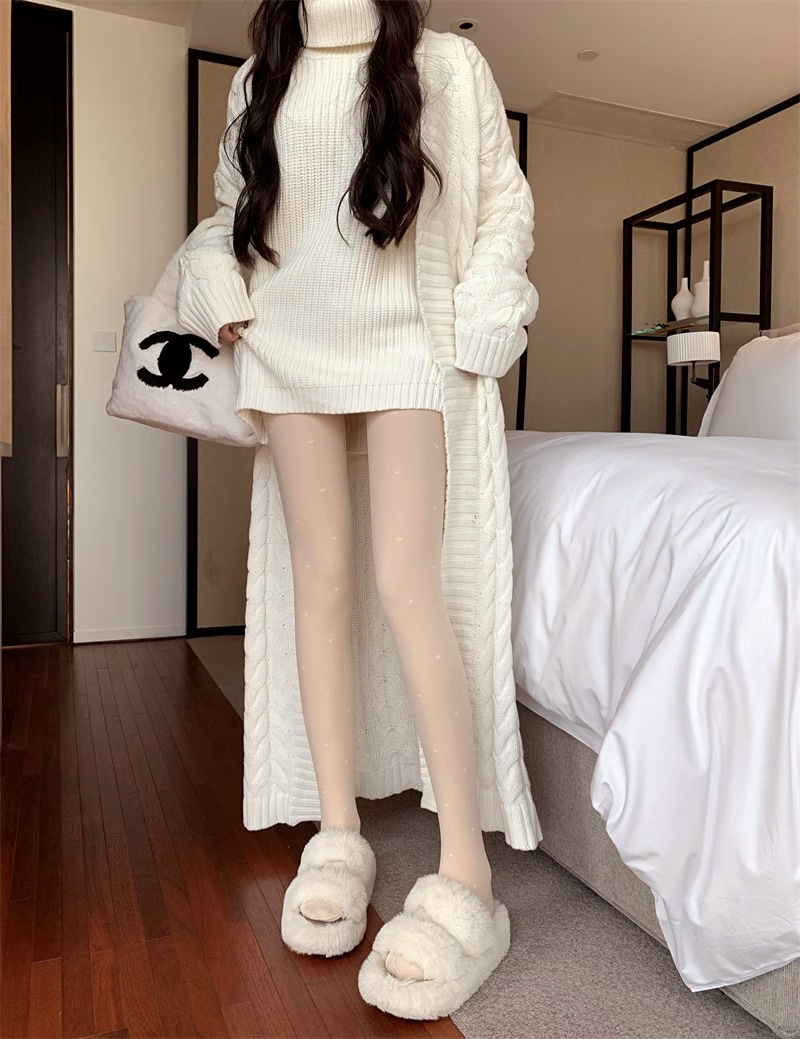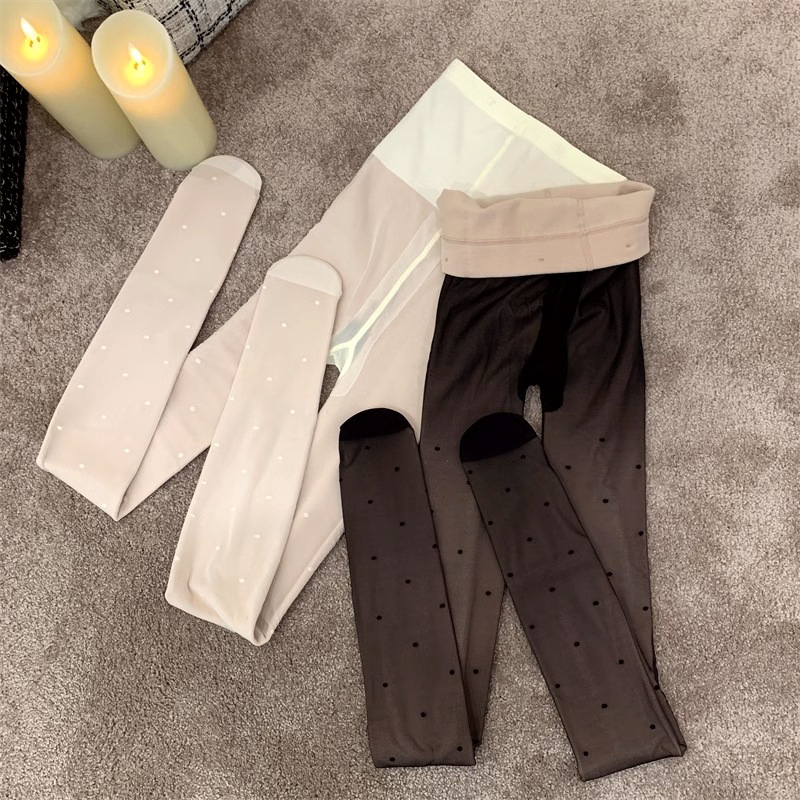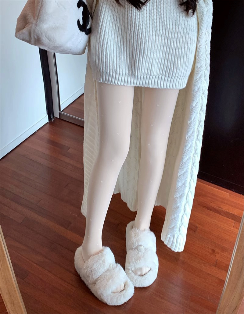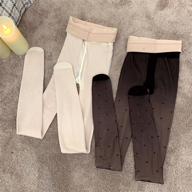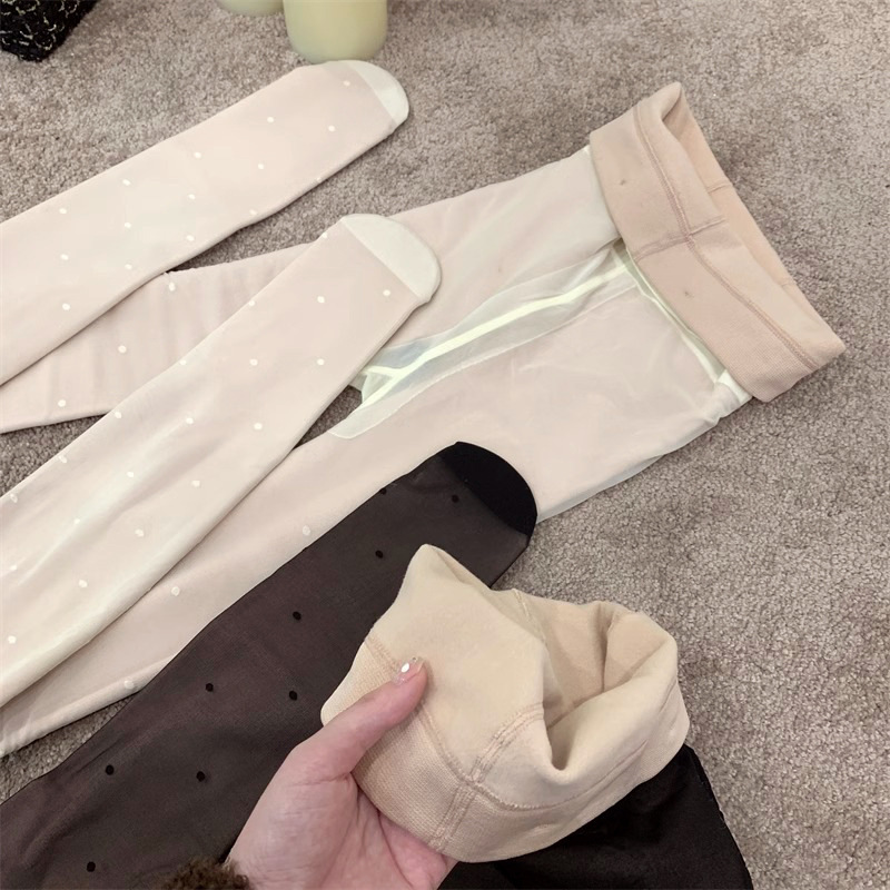 흰색 폴카 도트 실크 스타킹 두꺼운 기모 더블 레이어 분리 가능한 러브 도트 순수 우유 화이트 섹시한 가을과 겨울 팬티 스타킹