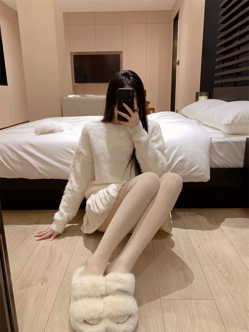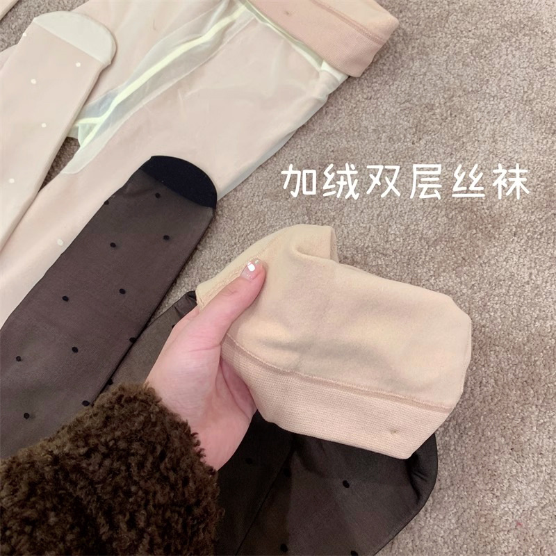 흰색 폴카 도트 실크 스타킹 두꺼운 기모 더블 레이어 분리 가능한 러브 도트 순수 우유 화이트 섹시한 가을과 겨울 팬티 스타킹스토어 가기