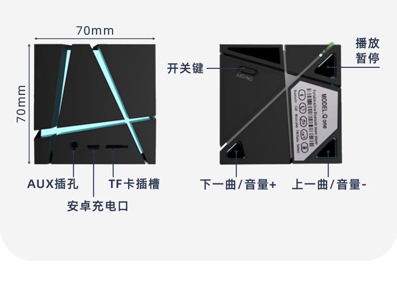 멋진 다채로운 빛 큐브 오디오 서브 우퍼 미니 휴대용 무선 카드 작은 오디오 창조적 인 생일 선물