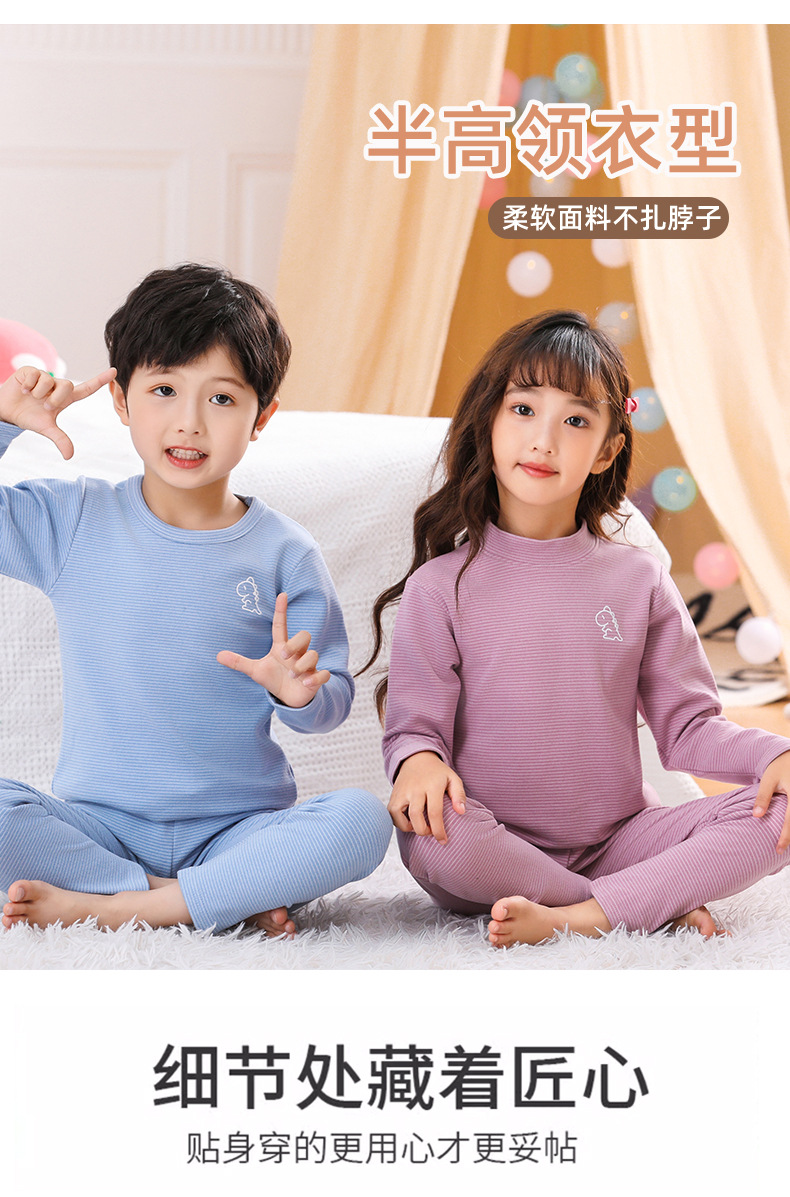 어린이 양면 브러시 플러시 롱 존스 소년 소녀 겨울 열 속옷 세트 미드 칼라 바닥 줄무늬 잠옷스토어 가기