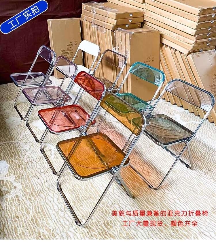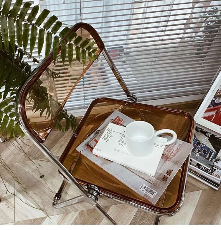 투명 의자 플라스틱 크리스탈 의자 노르딕 접이식 식당 의자 홈 등받이 아크릴 인터넷 유명 인사 메이크업 의자