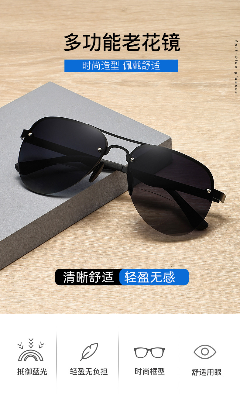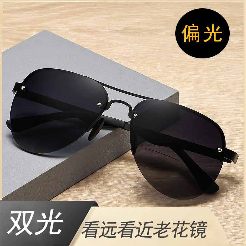 남성용 원거리 및 근거리 겸용 이중광 선글라스, 편광 독서용 안경, 블루라이트 차단 안경