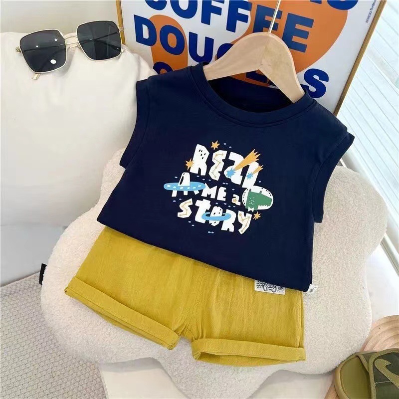 100 면 아동복 여름 새로운 민소매 조끼 소년 소녀 용 루즈 티셔츠 웨스턴 스타일 베이비 자켓 루즈스토어 가기