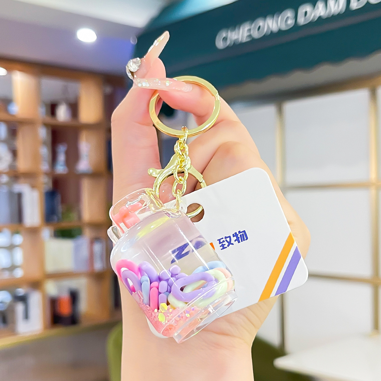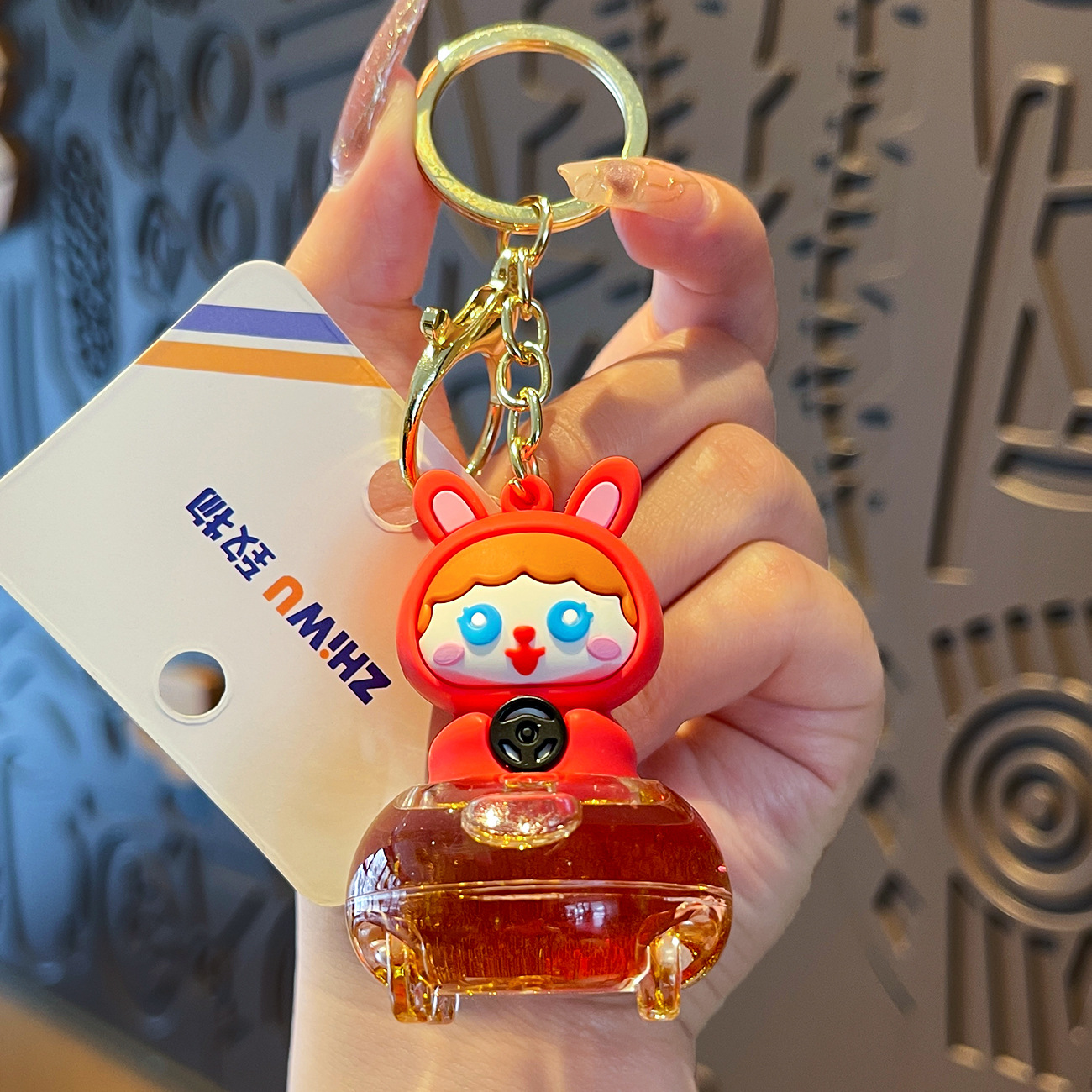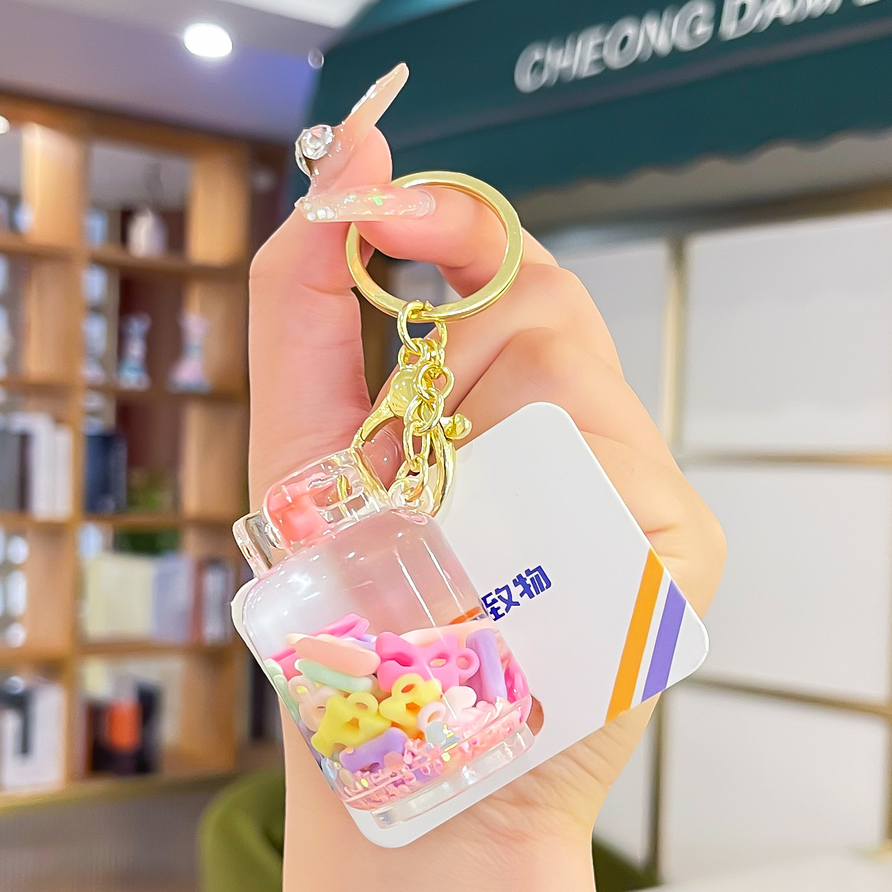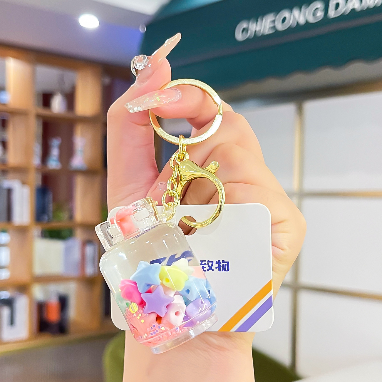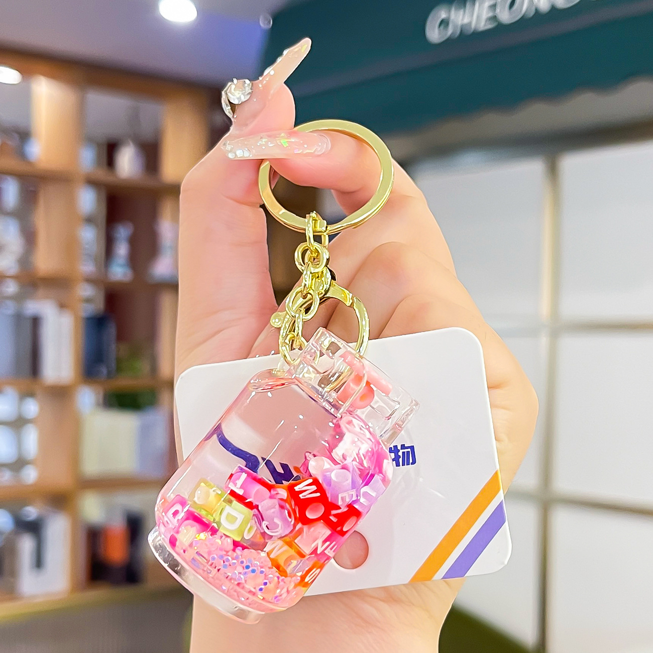 새로운 오일 퀵 샌드 키 체인 귀여운 표류 병 퀵 샌드 펜던트 자동차 만화 키 체인 작은 선물 도매스토어 가기