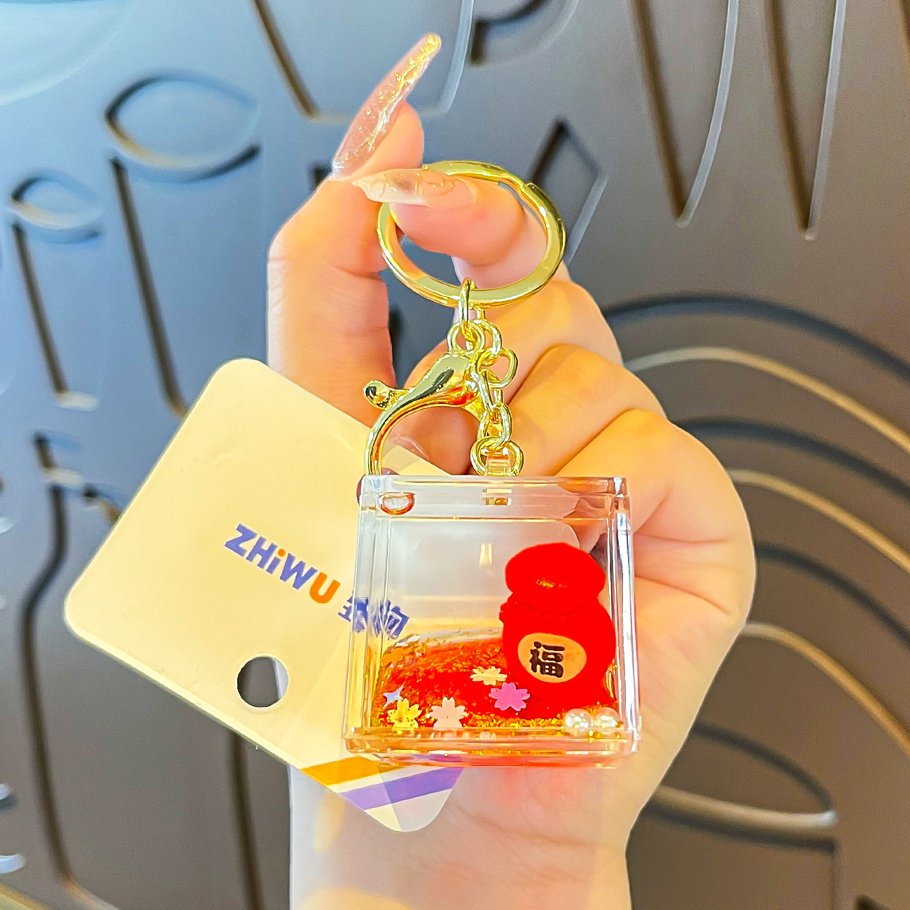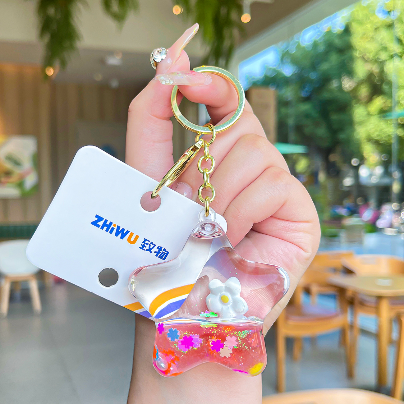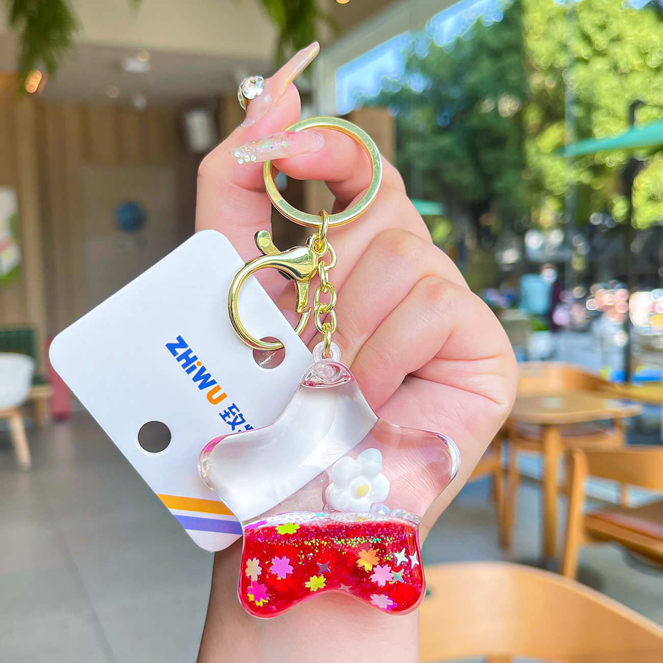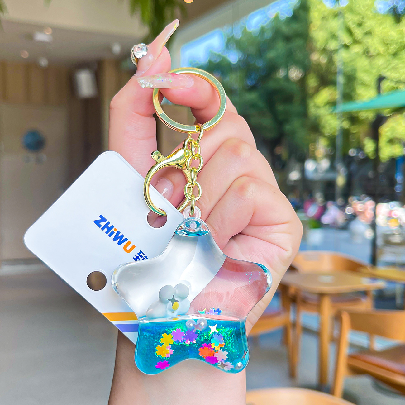 새로운 오일 퀵 샌드 키 체인 귀여운 표류 병 퀵 샌드 펜던트 자동차 만화 키 체인 작은 선물 도매스토어 가기
