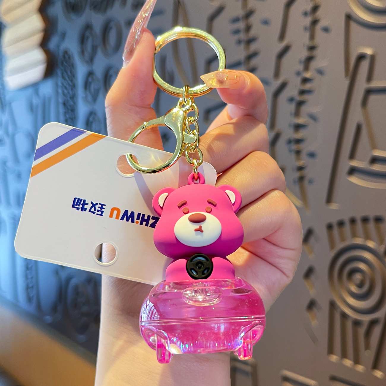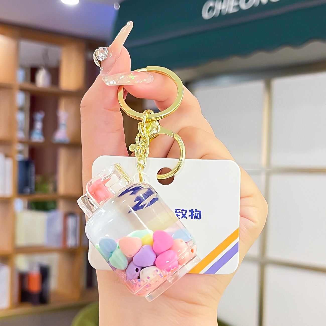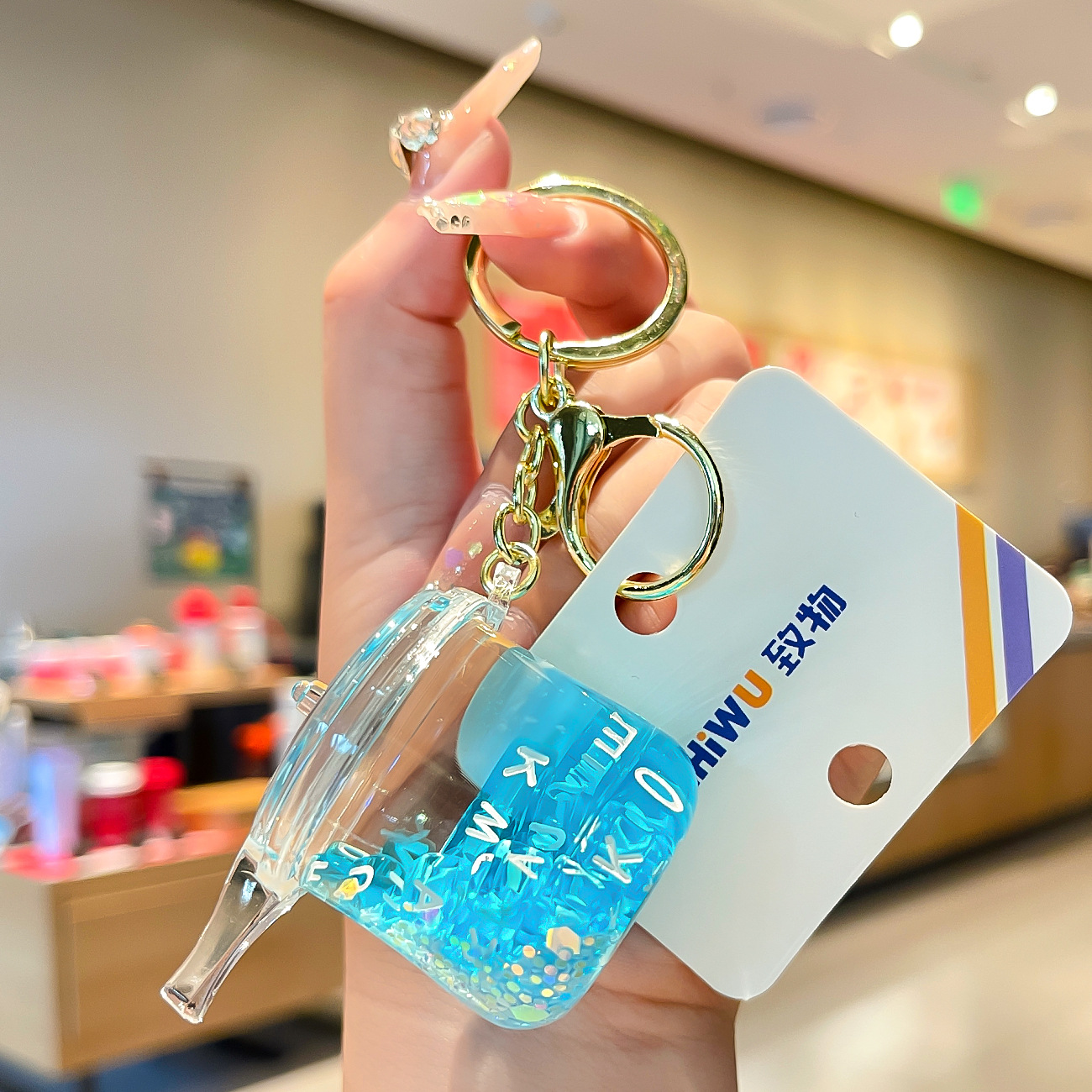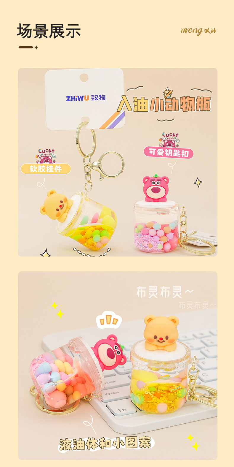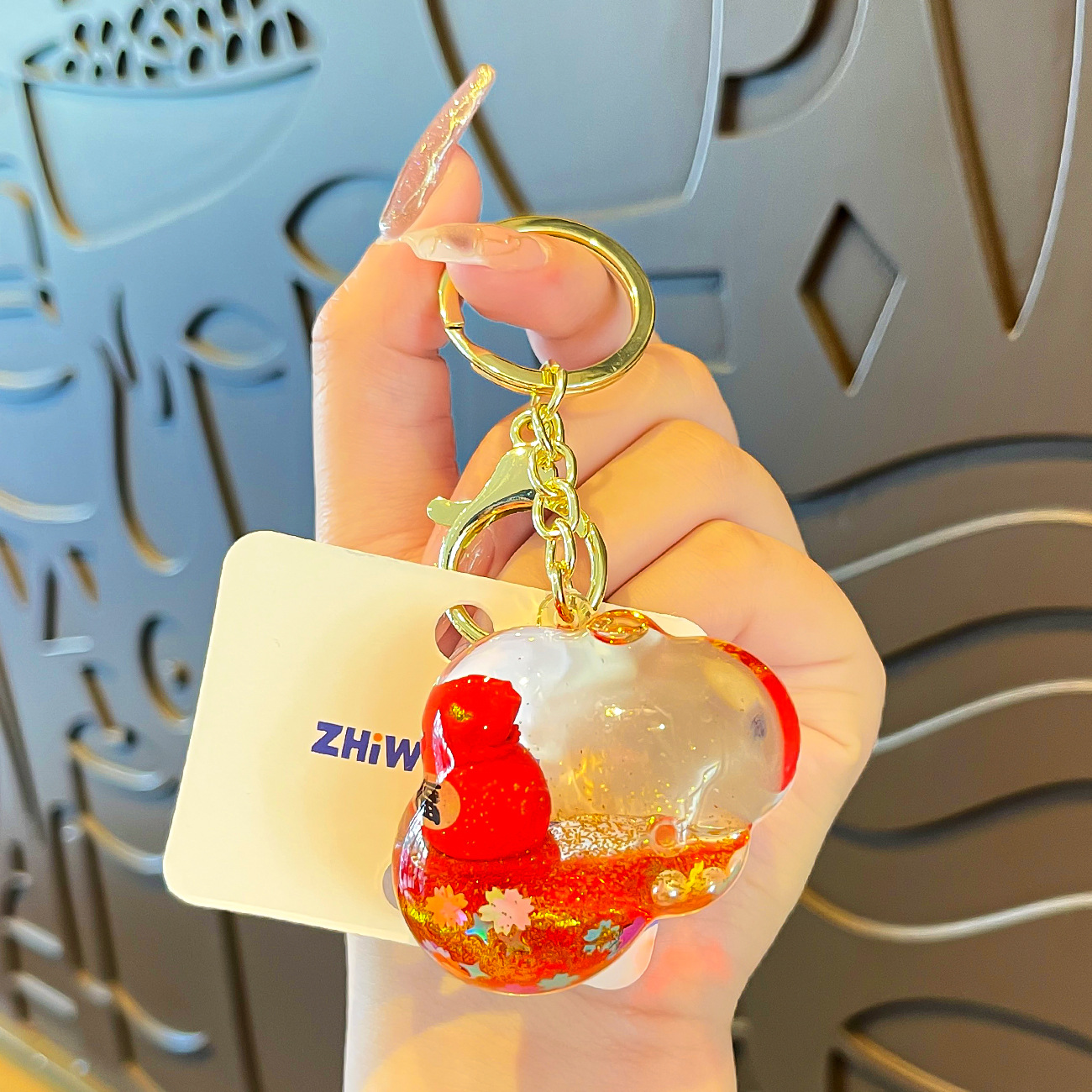새로운 오일 퀵 샌드 키 체인 귀여운 표류 병 퀵 샌드 펜던트 자동차 만화 키 체인 작은 선물 도매스토어 가기