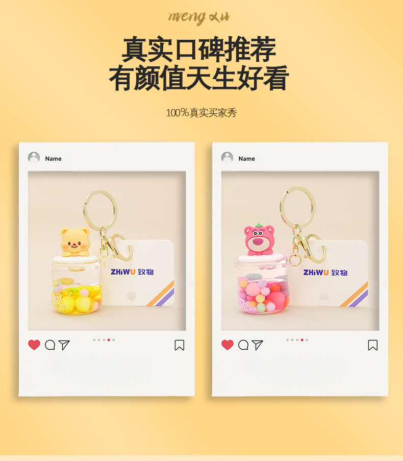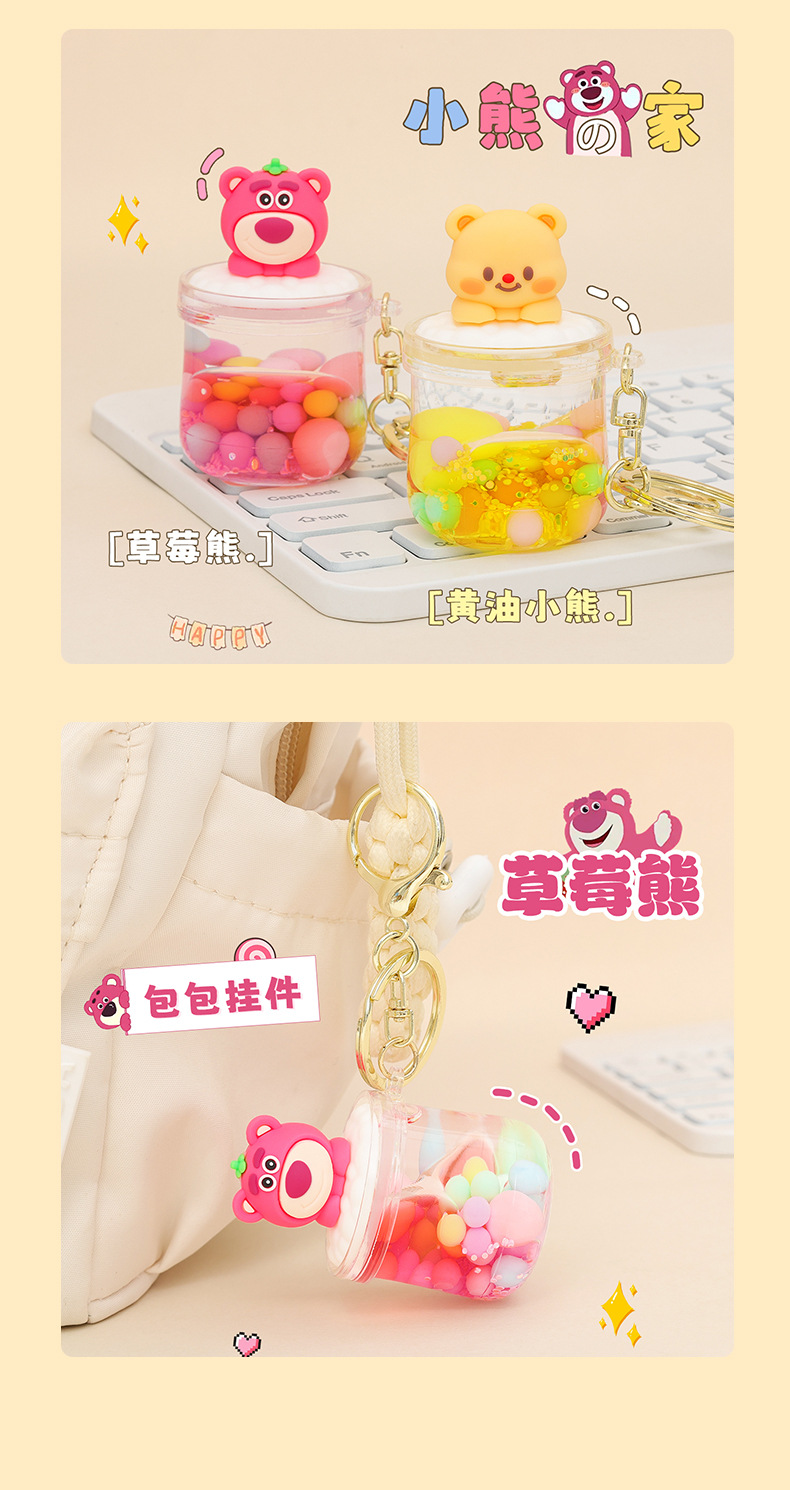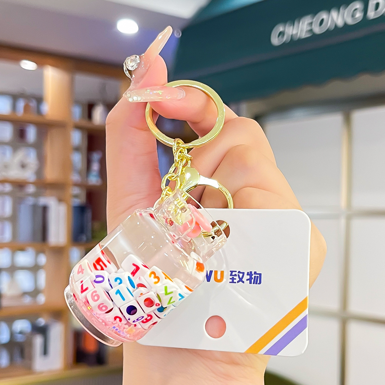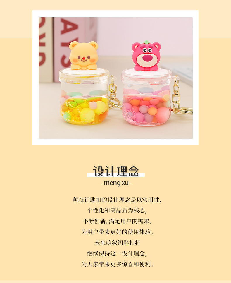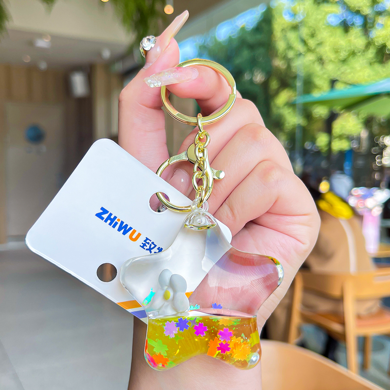 새로운 오일 퀵 샌드 키 체인 귀여운 표류 병 퀵 샌드 펜던트 자동차 만화 키 체인 작은 선물 도매스토어 가기