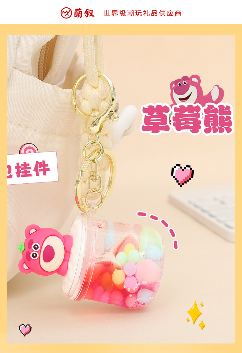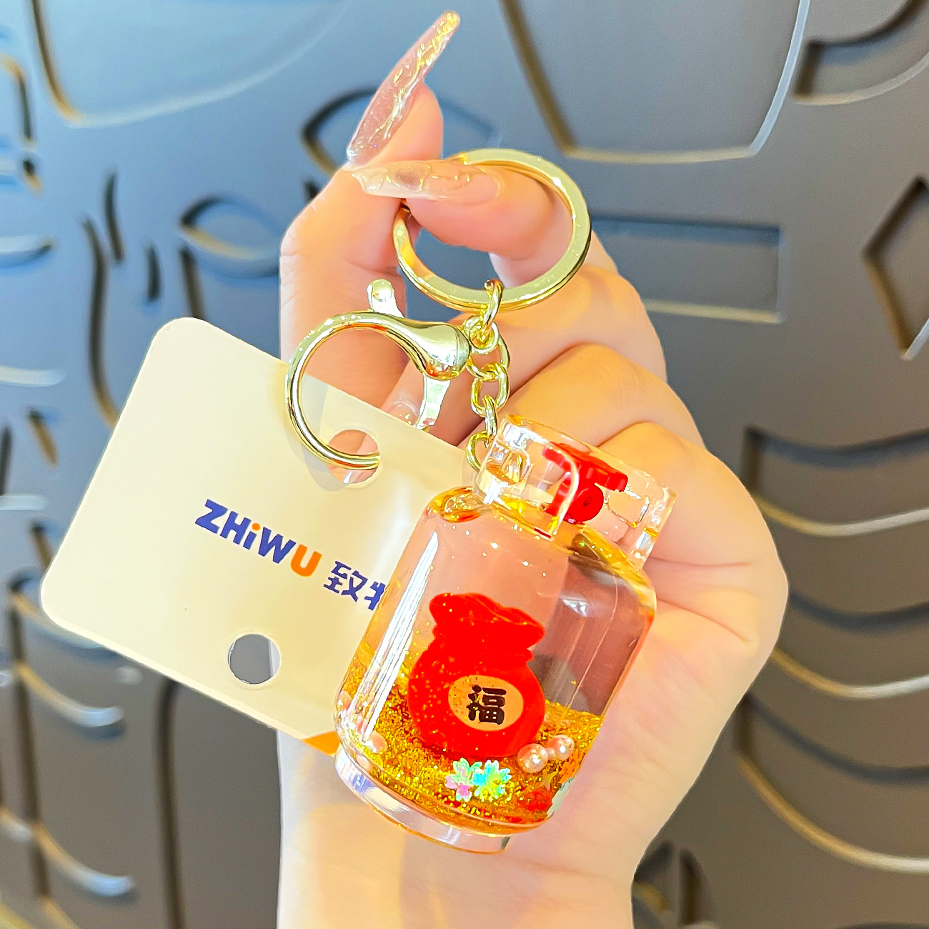 새로운 오일 퀵 샌드 키 체인 귀여운 표류 병 퀵 샌드 펜던트 자동차 만화 키 체인 작은 선물 도매