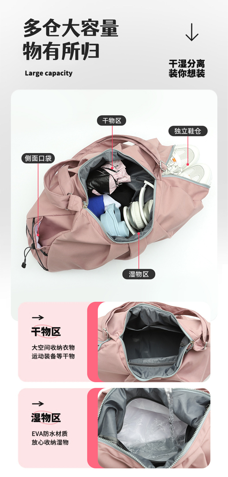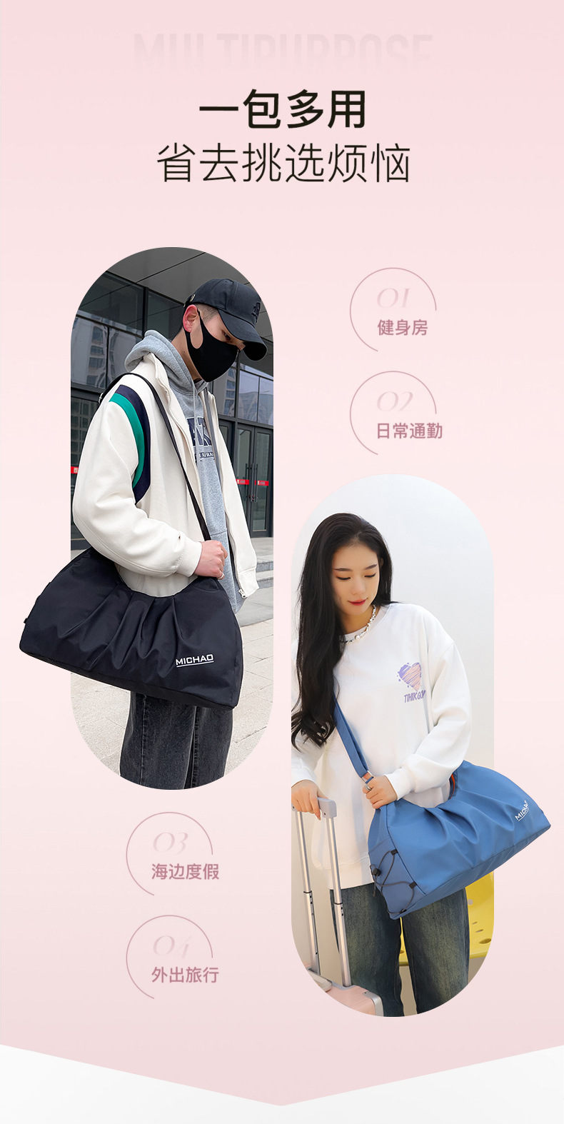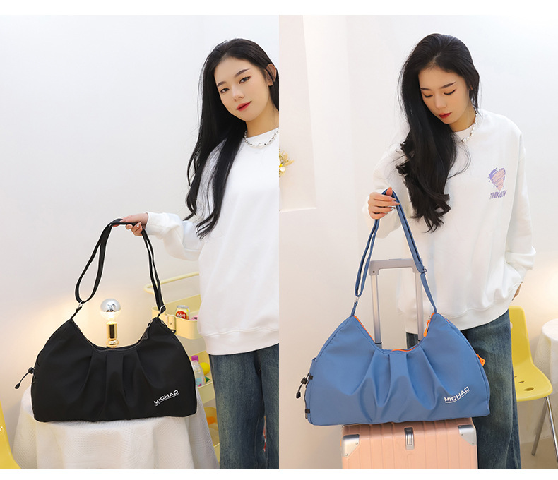 대용량 캐주얼 주름 수영 피트니스 가방 여성 단거리 여행 가방 남성 휴대용 어깨 크로스 바디 수하물 가방