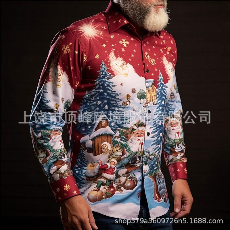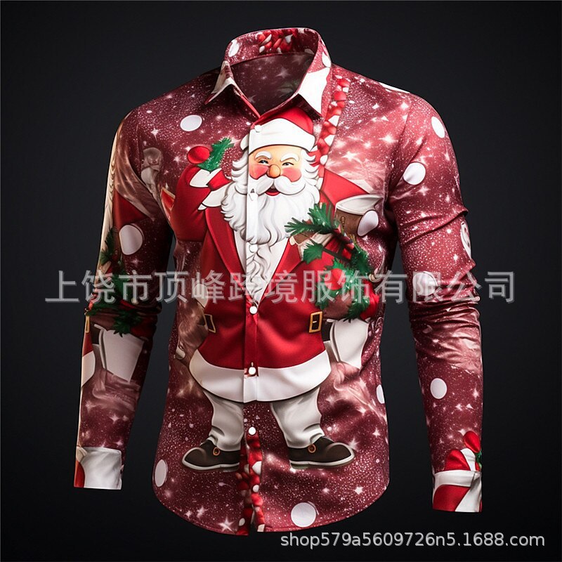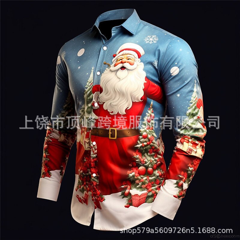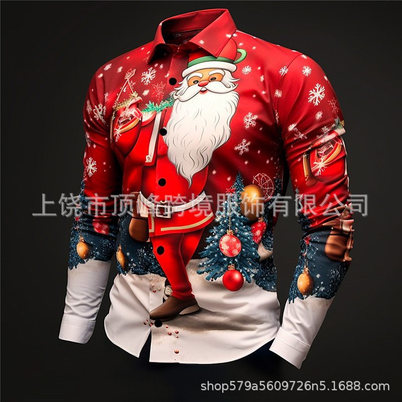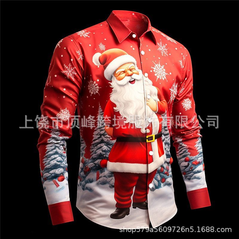 새로운 크리스마스 요소 남성 옷깃 산타 클로스 3D 디지털 인쇄 셔츠 가을 남자의 느슨한 캐주얼 셔츠스토어 가기