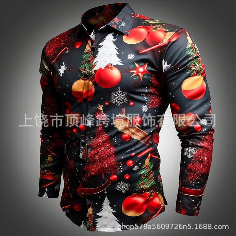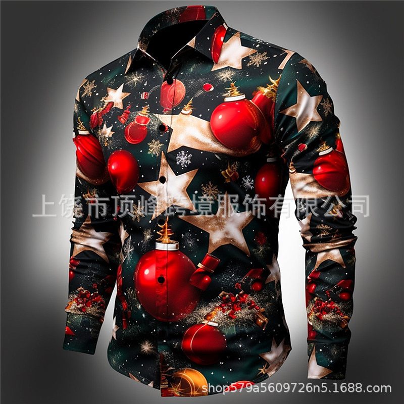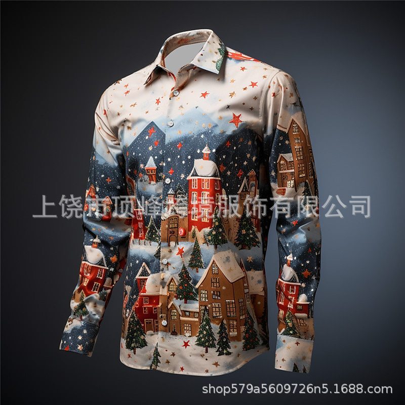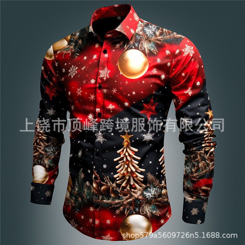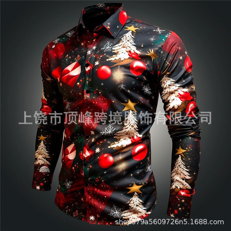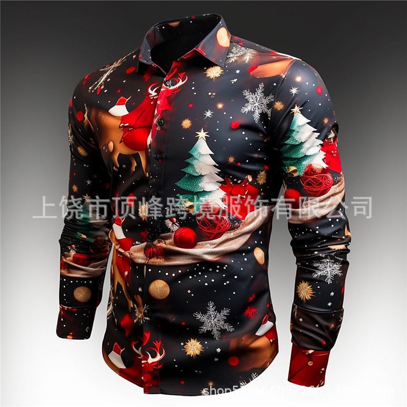새로운 크리스마스 요소 남성 옷깃 산타 클로스 3D 디지털 인쇄 셔츠 가을 남자의 느슨한 캐주얼 셔츠스토어 가기