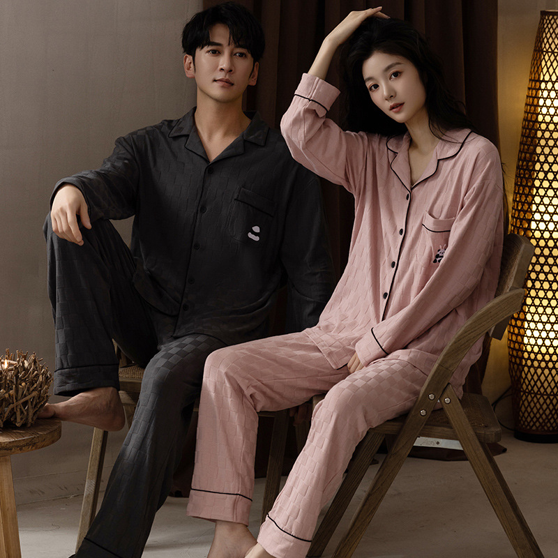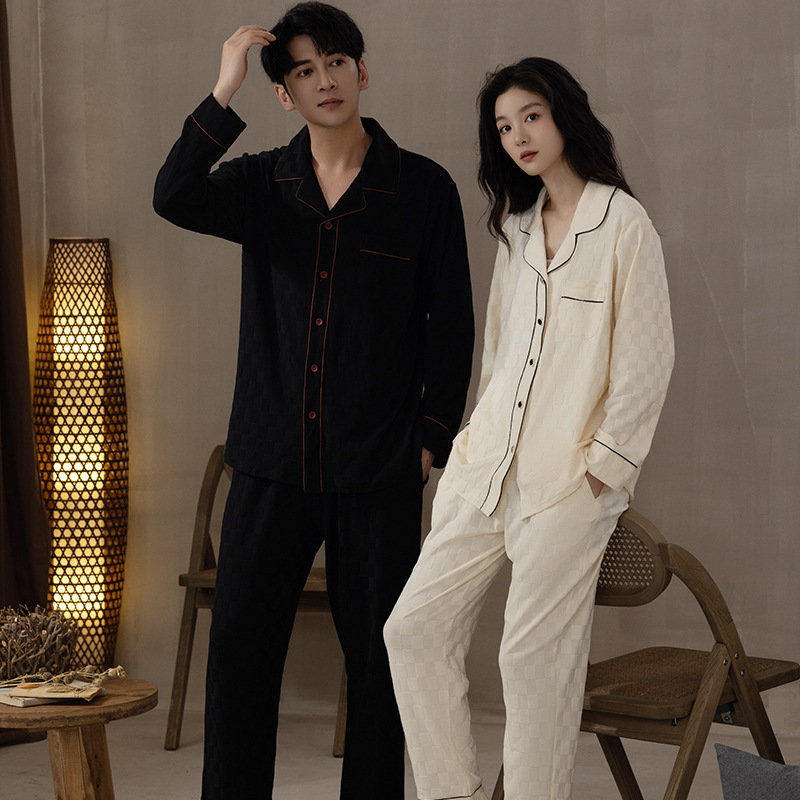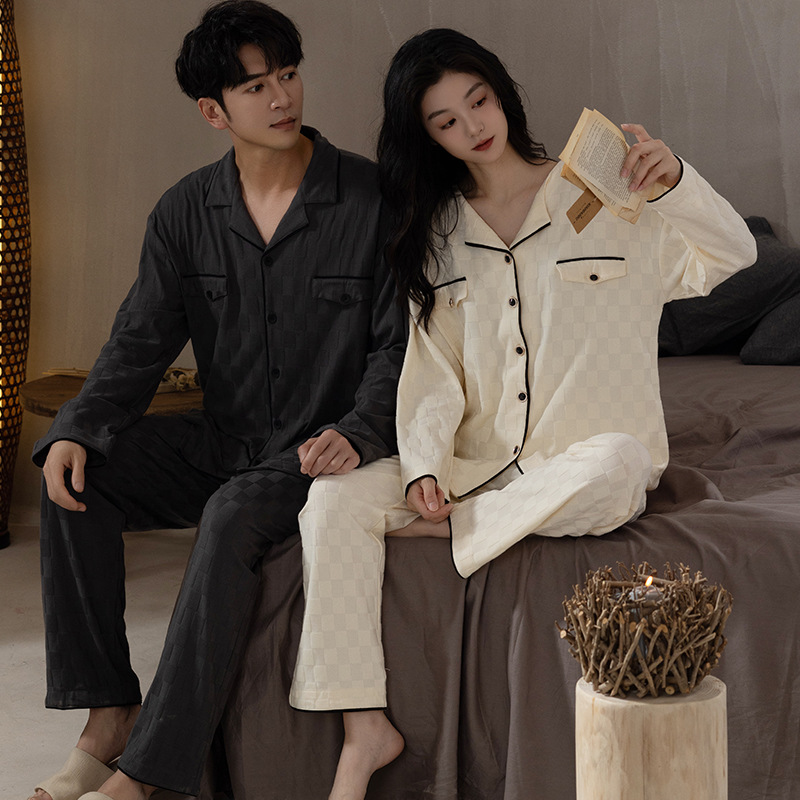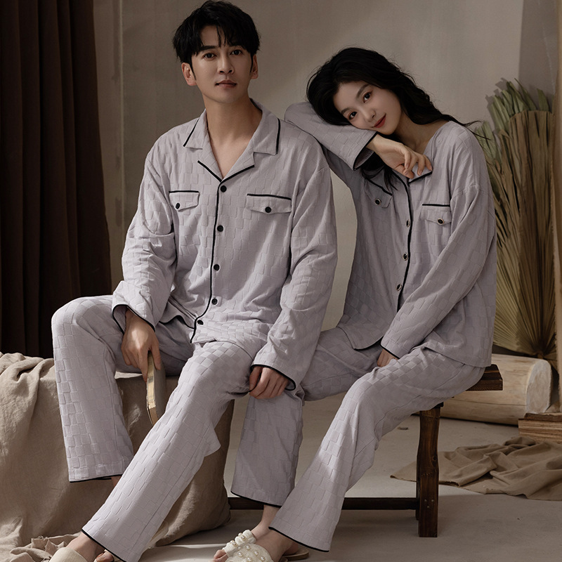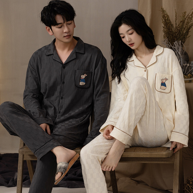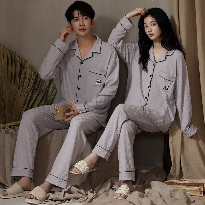 봄과 가을 커플 잠옷 순면 긴팔 남성 여성 달콤한 흰색 홈 웨어는 일본식 밖에서 입을 수 세트스토어 가기