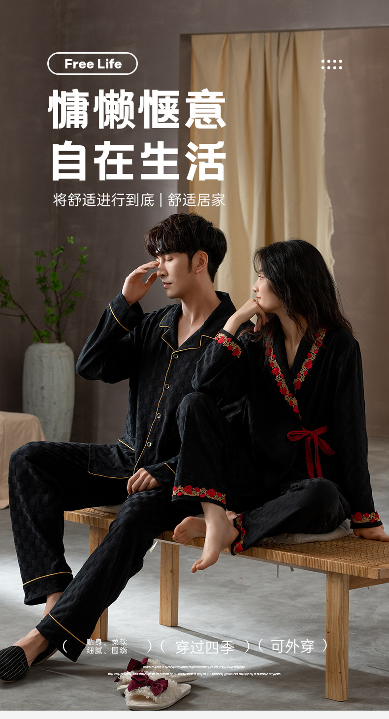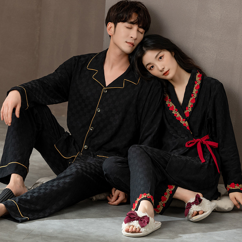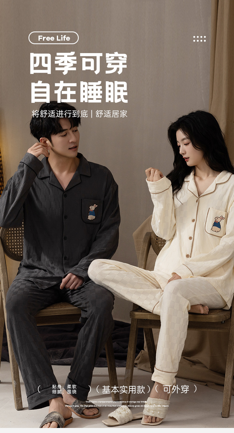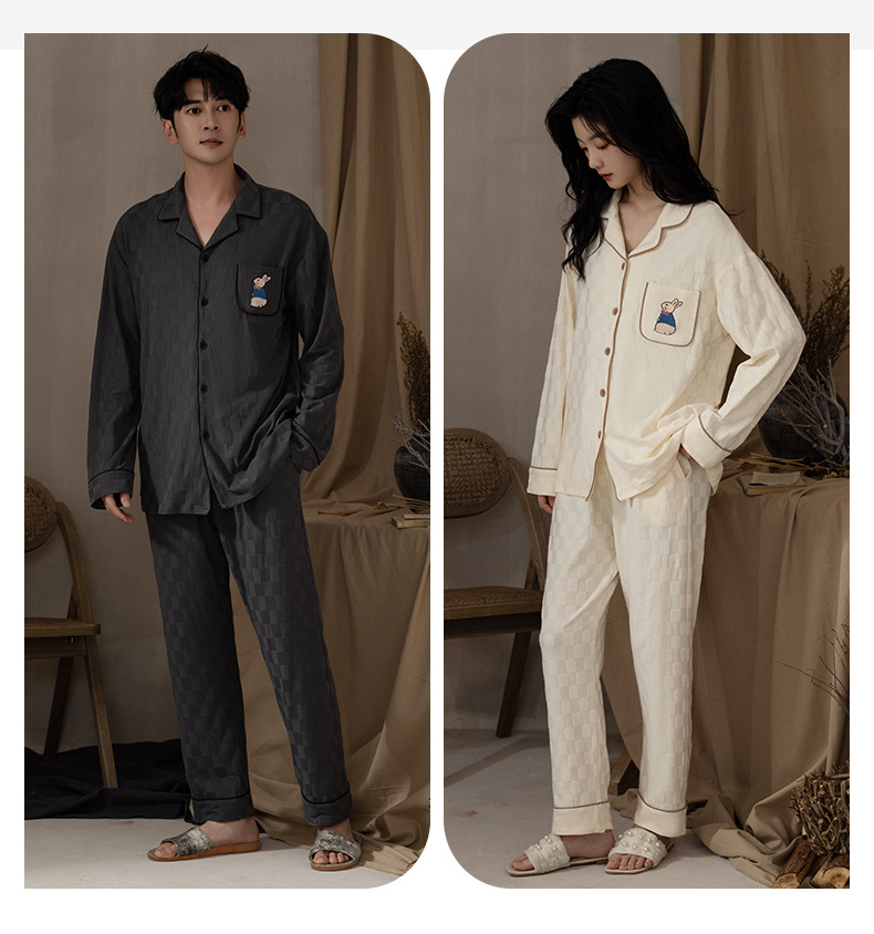 봄과 가을 커플 잠옷 순면 긴팔 남성 여성 달콤한 흰색 홈 웨어는 일본식 밖에서 입을 수 세트스토어 가기