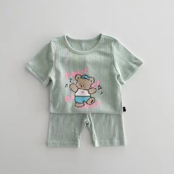 Ins 한국식 캔디 컬러 봉제 만화 곰 반팔 어린이 반팔 반팔 소년 소녀 여름 상쾌한 세트스토어 가기