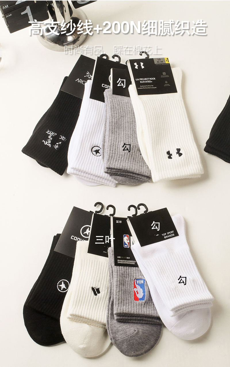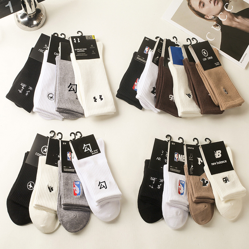 양말 남성 3 개 화살표 자수 높은 스타킹 스포츠 유행 브랜드 스타킹 그물 에디션 솔리드 컬러 스켈레톤 버드 여성용 코튼 양말