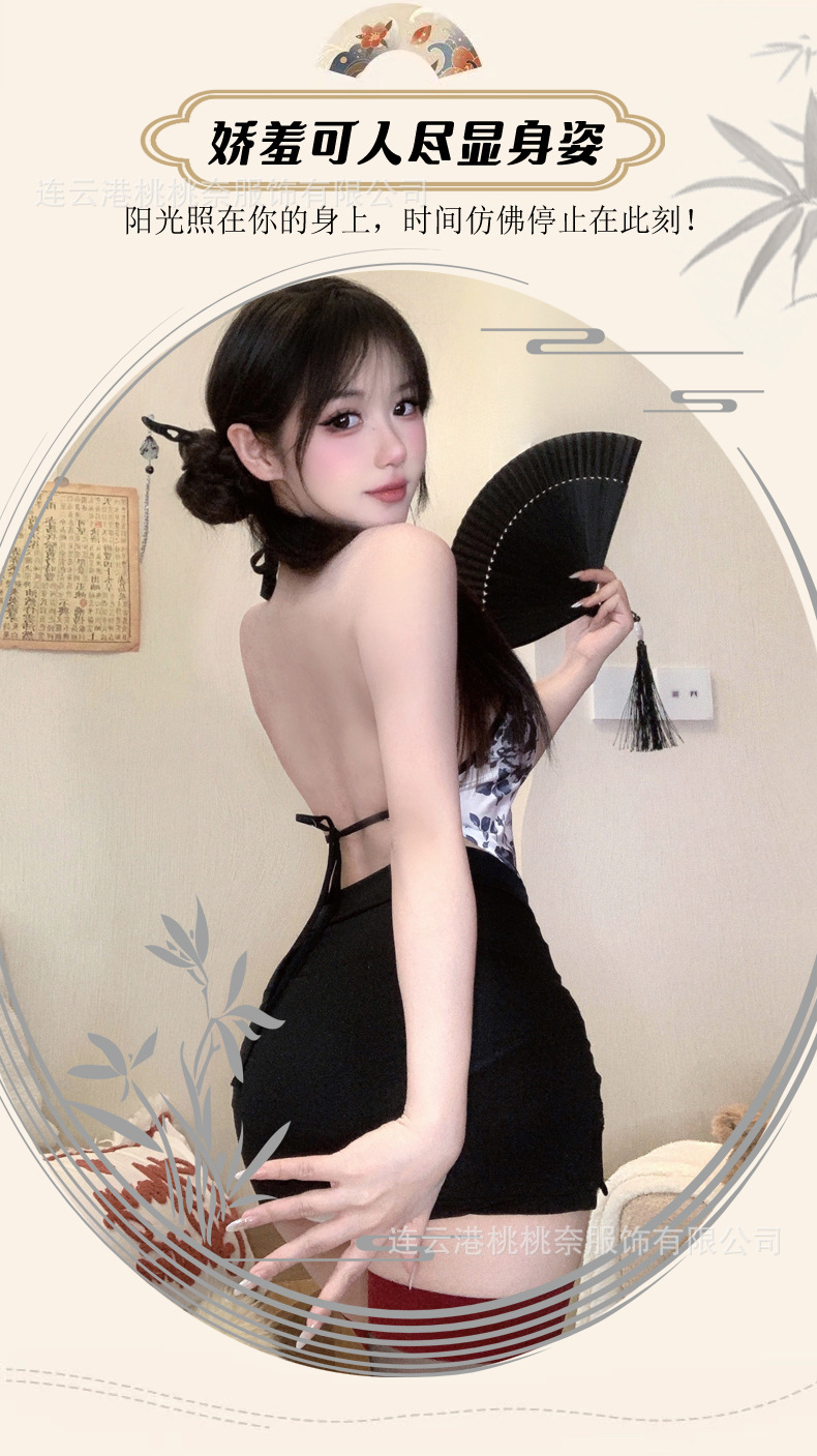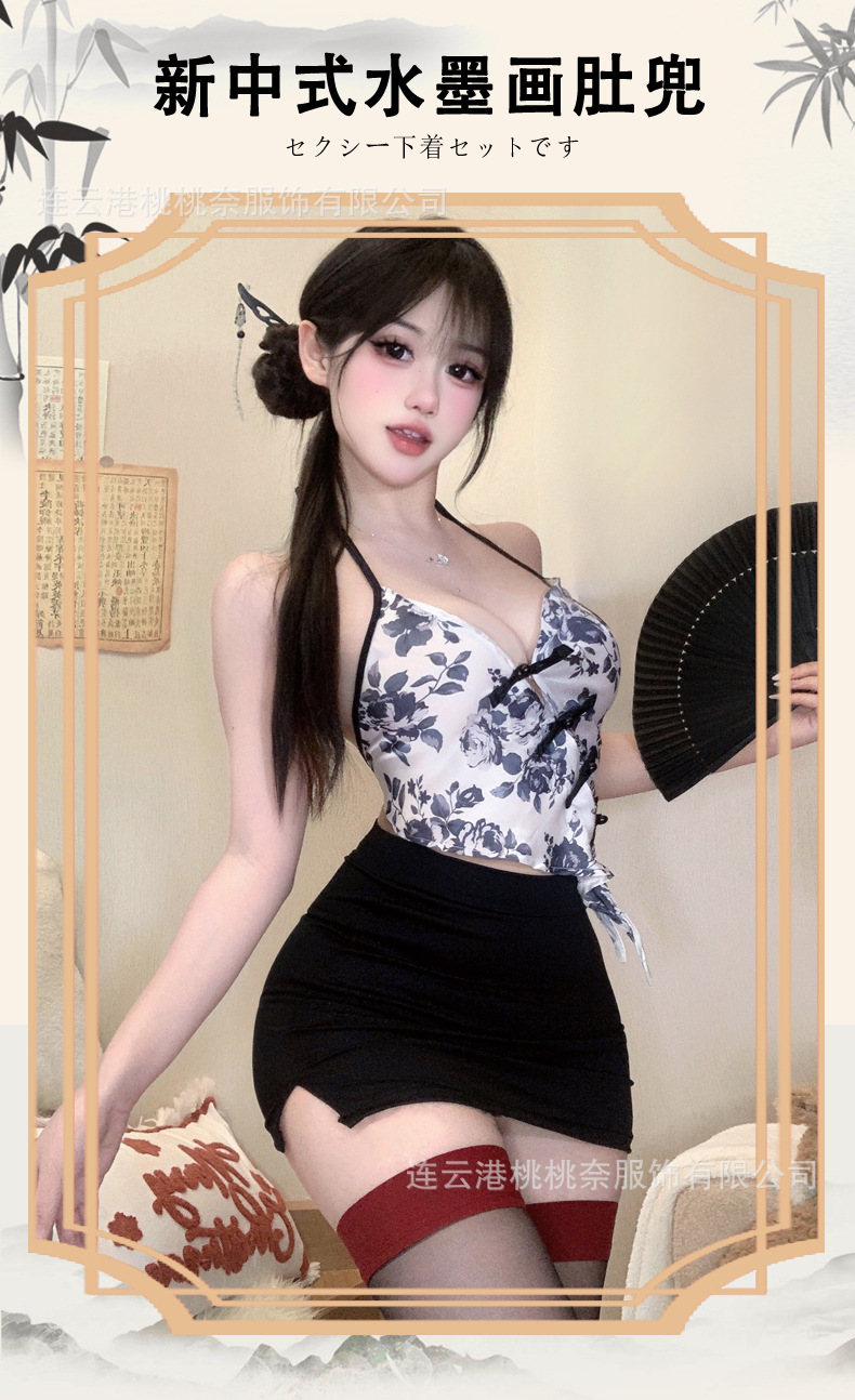 새로운 섹시한 란제리 중국 잉크 선 섹시한 검은 실크 칼집 그룹 복고풍 슬리밍 순수한 욕망 유니폼 세트 여성스토어 가기
