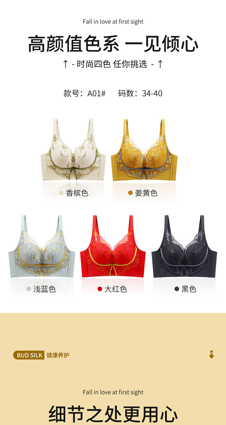 하이 엔드 럭셔리 뷰티 살롱 라인 푸시 업 따뜻한 감각 와이어 프리 여성 속옷 조절 가능한 브래지어 레이스 브래지어 A01 #