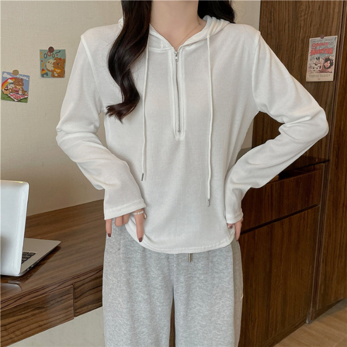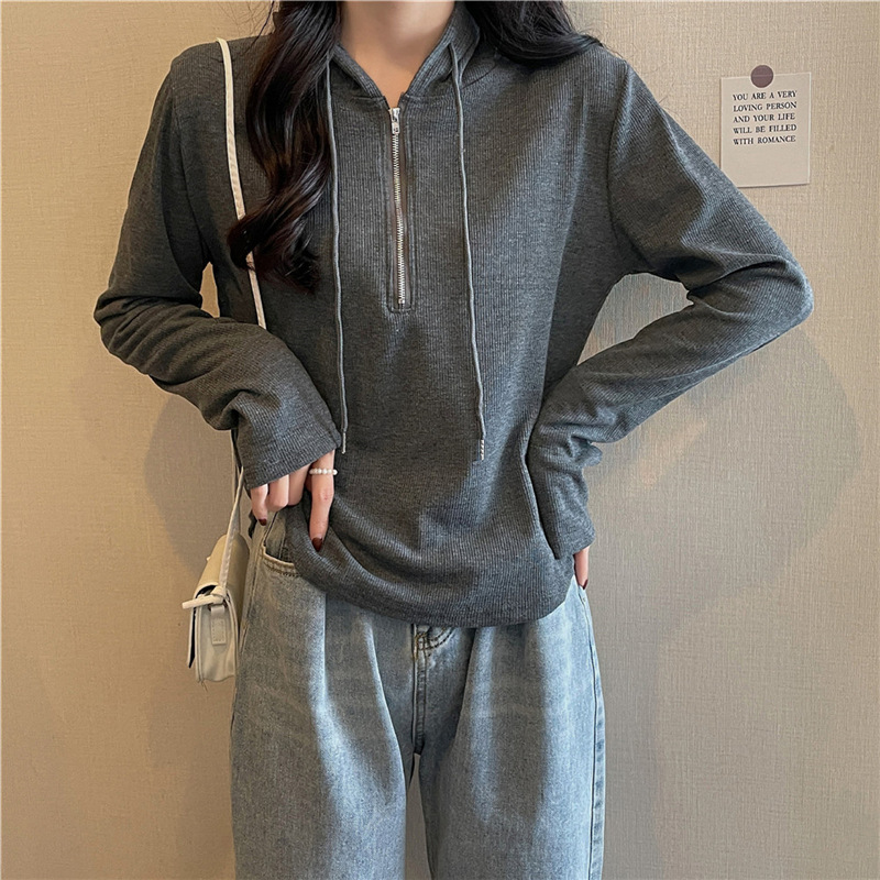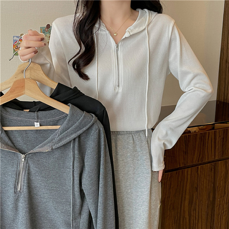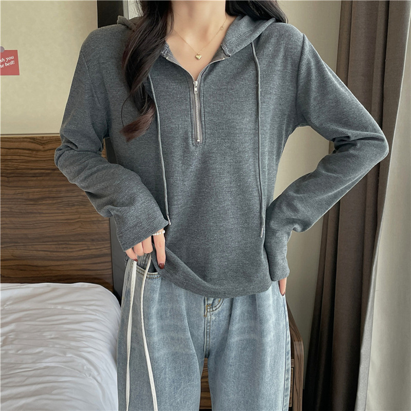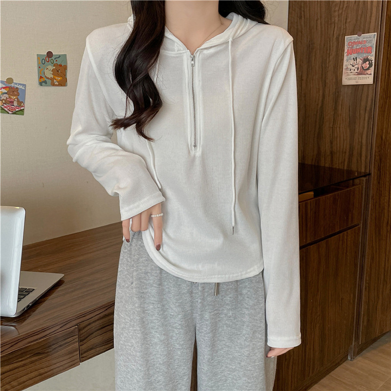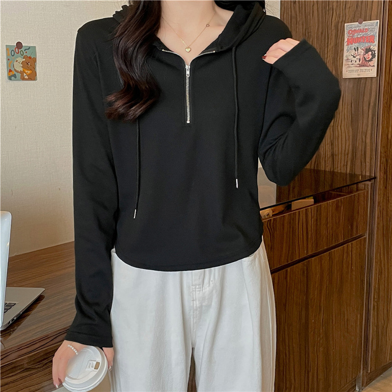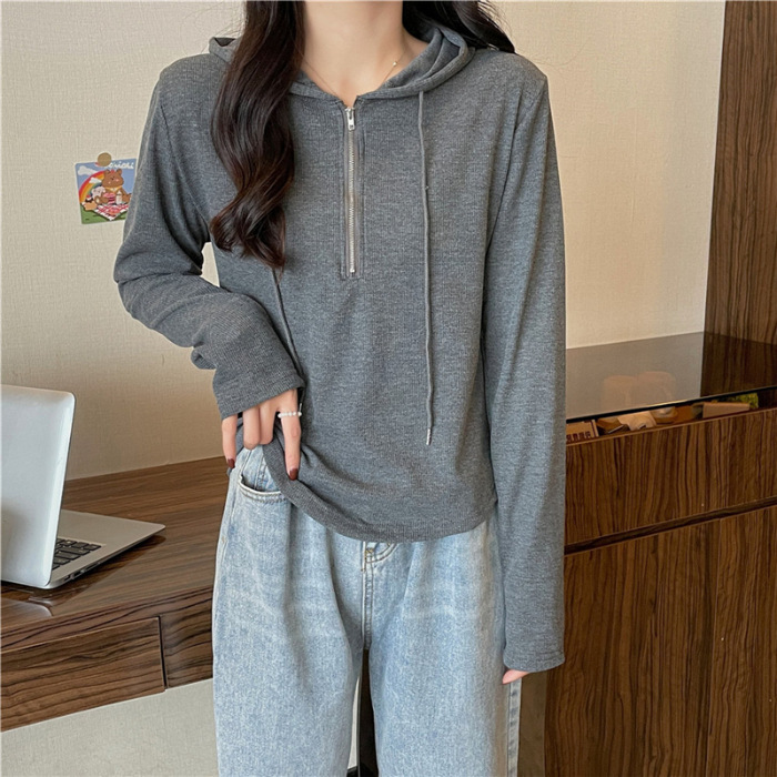 2023 새로운 한국 스타일 디자인 센스 틈새 얇은 패션 지퍼 탑 후드 짧은 스웨트 셔츠 여성의 긴 소매 봄과 가을