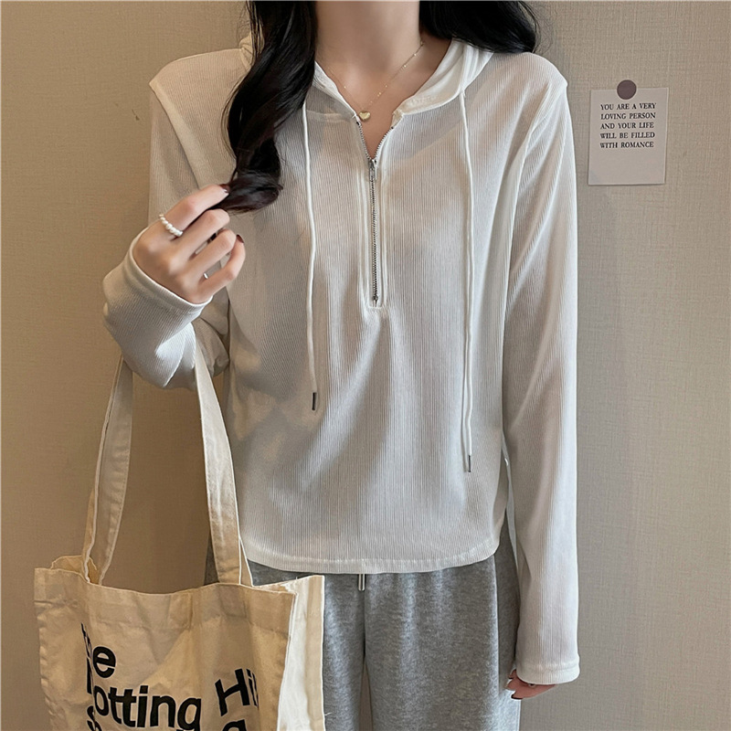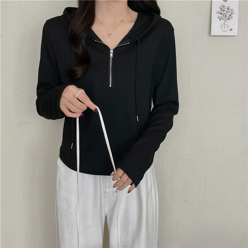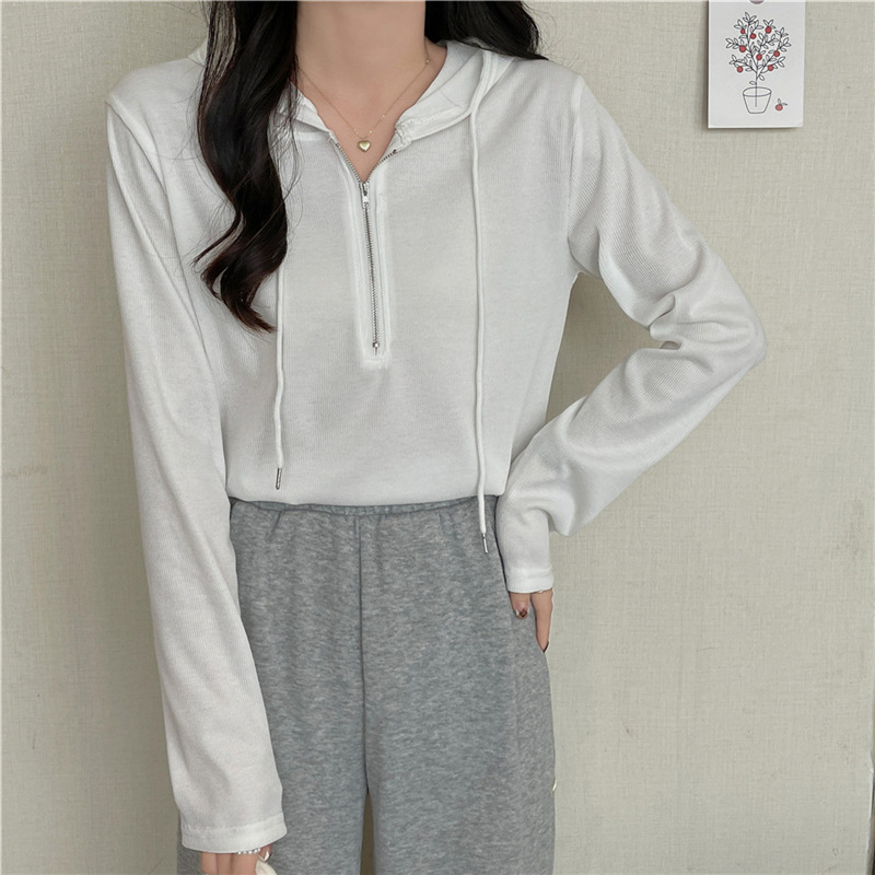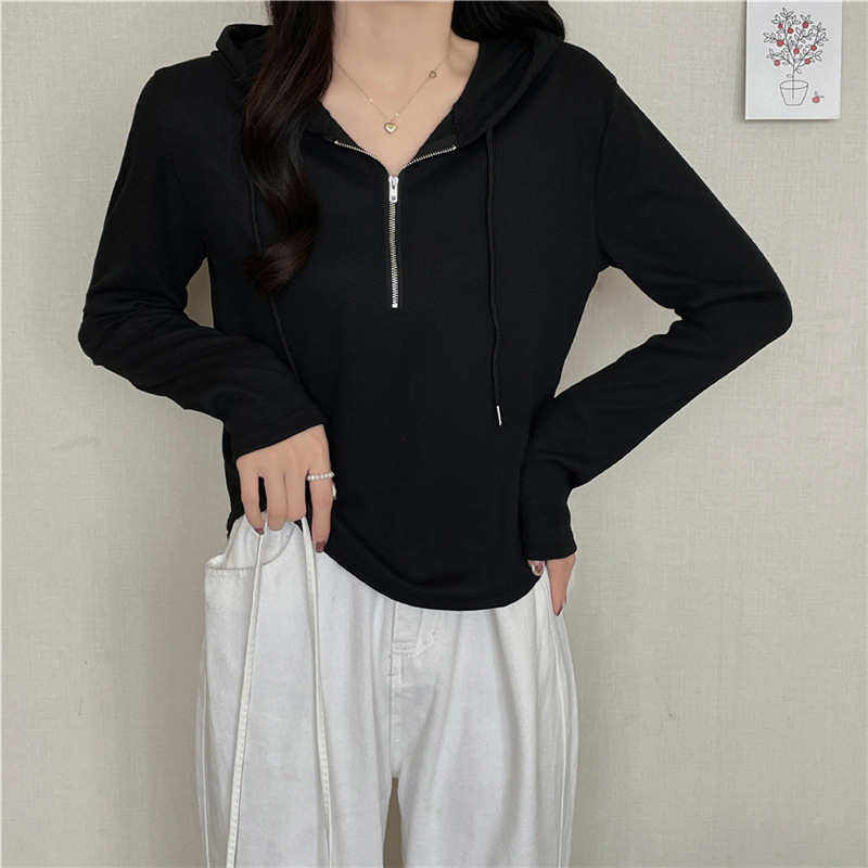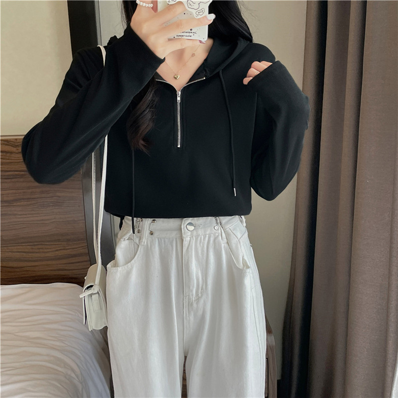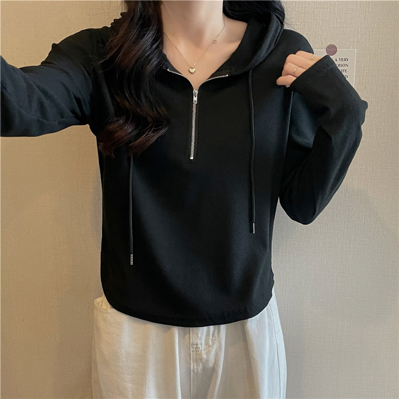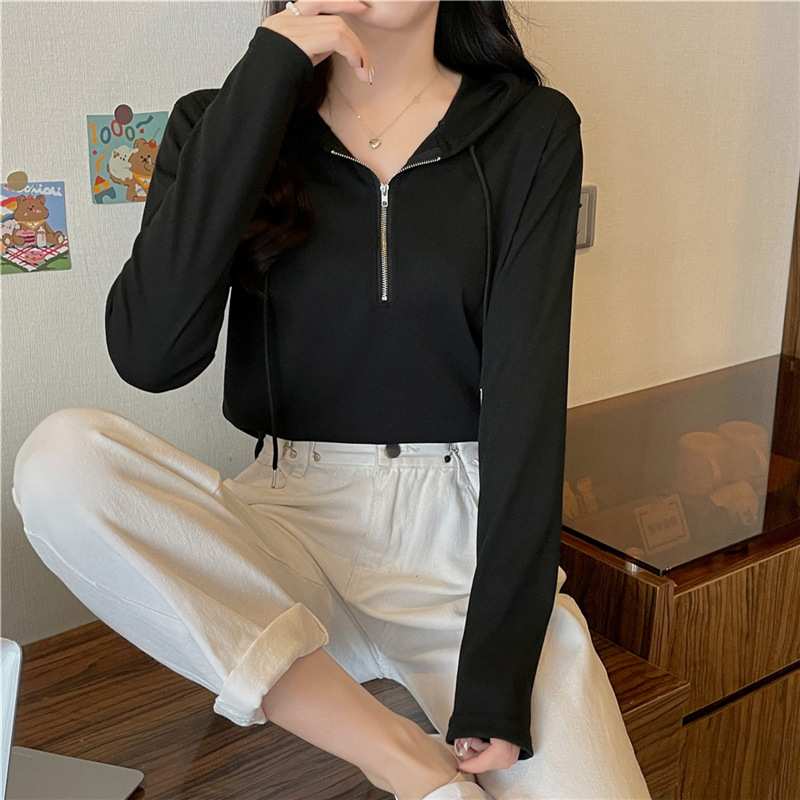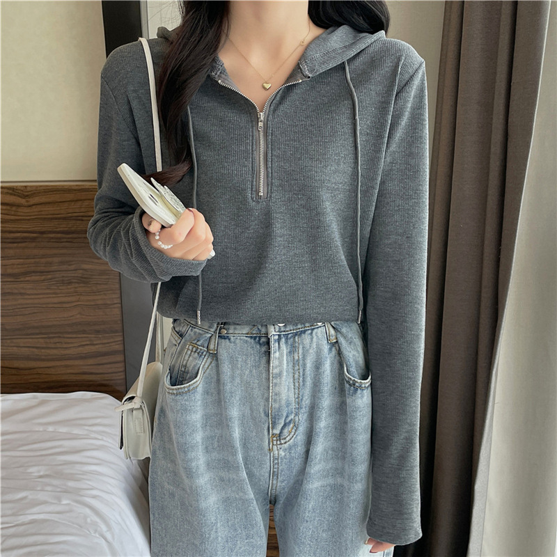 2023 새로운 한국 스타일 디자인 센스 틈새 얇은 패션 지퍼 탑 후드 짧은 스웨트 셔츠 여성의 긴 소매 봄과 가을스토어 가기