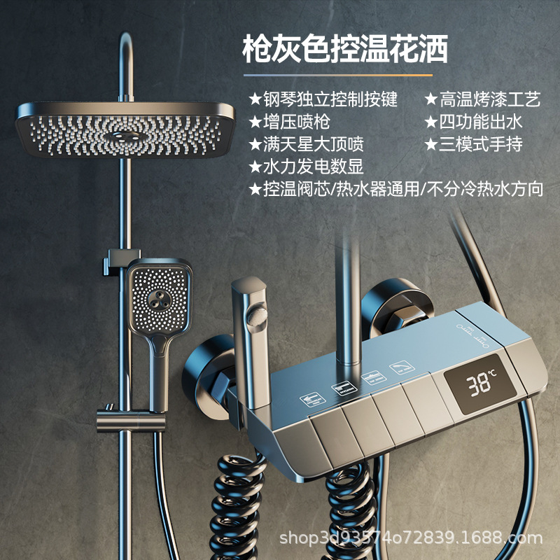 샤워 샤워 세트 건 그레이 모든 구리 샤워 가구 일정한 온도 압축 스프링클러 욕실 샤워
