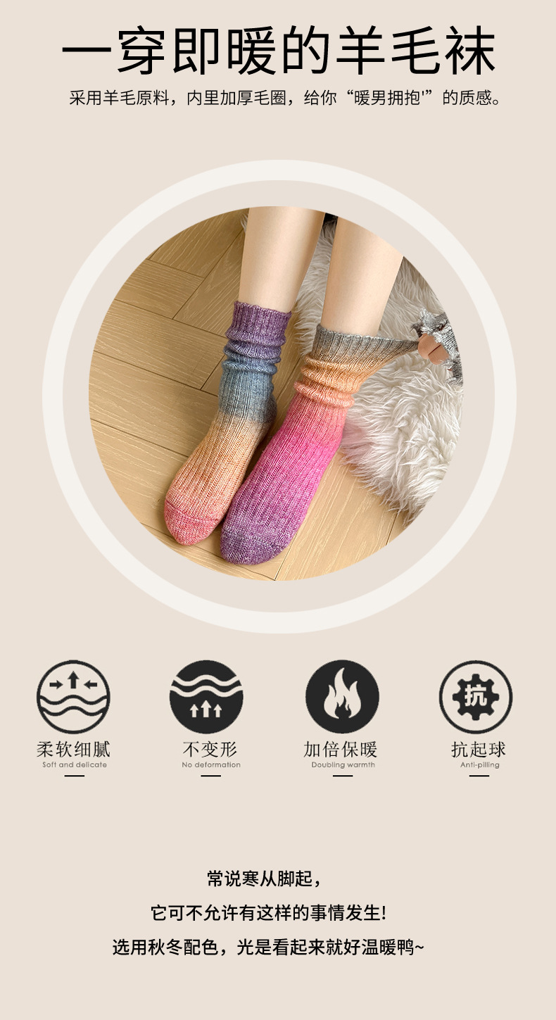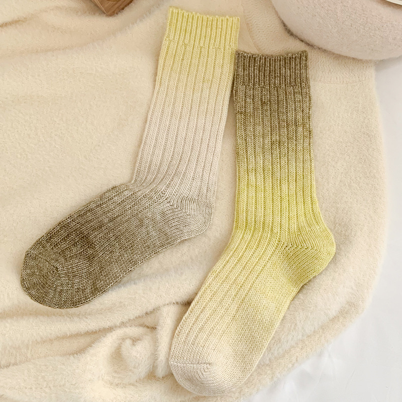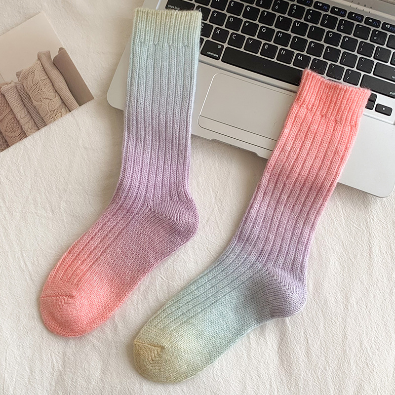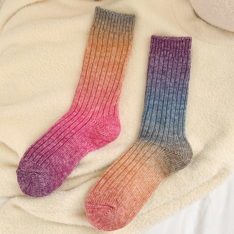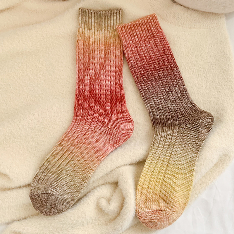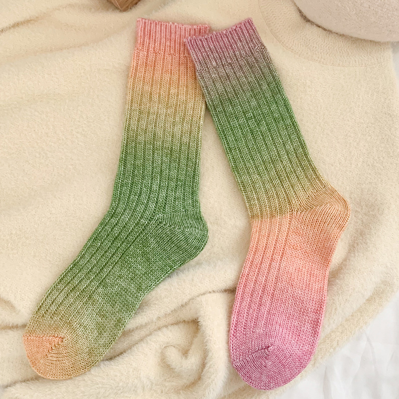 그라디언트 컬러 울 양말 여성 스타킹 가을과 겨울 양모 양말 넥타이 염색 무작위 색상 매칭 두꺼운 라인 트렌디 하이 양말