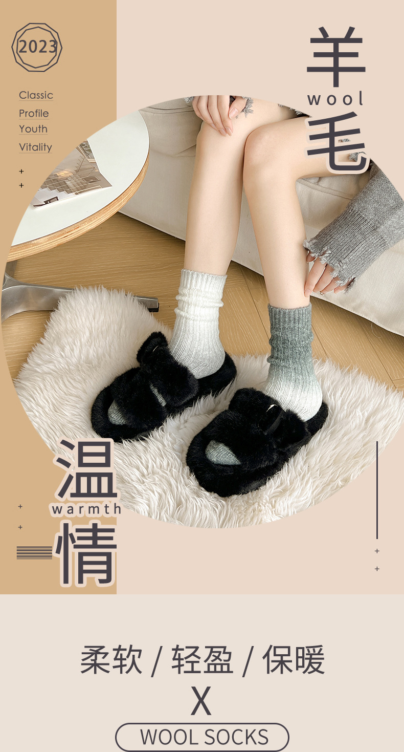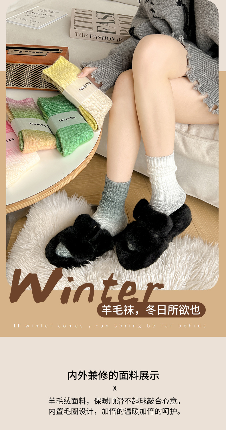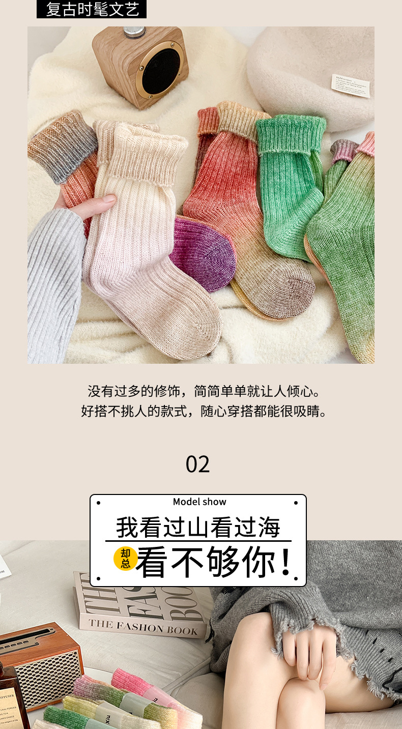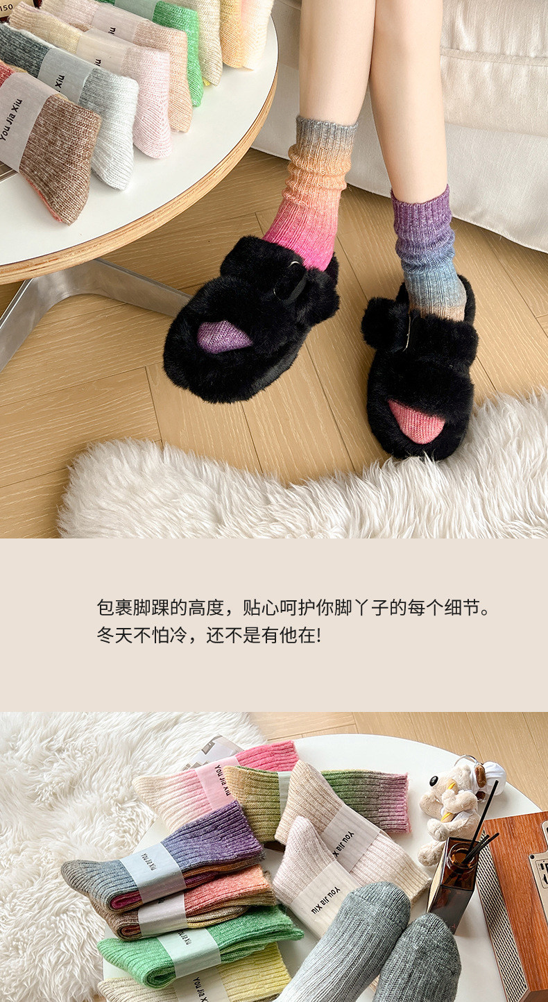 그라디언트 컬러 울 양말 여성 스타킹 가을과 겨울 양모 양말 넥타이 염색 무작위 색상 매칭 두꺼운 라인 트렌디 하이 양말