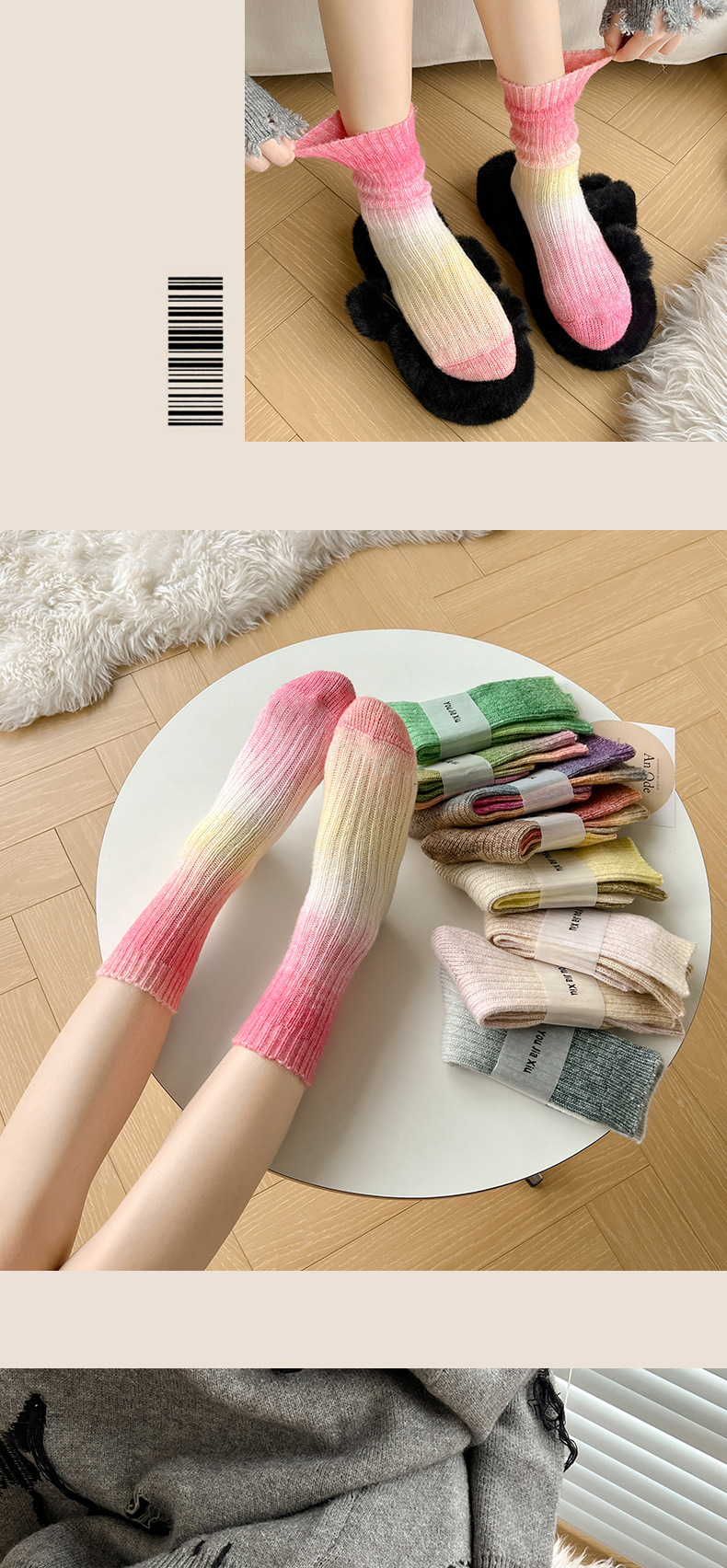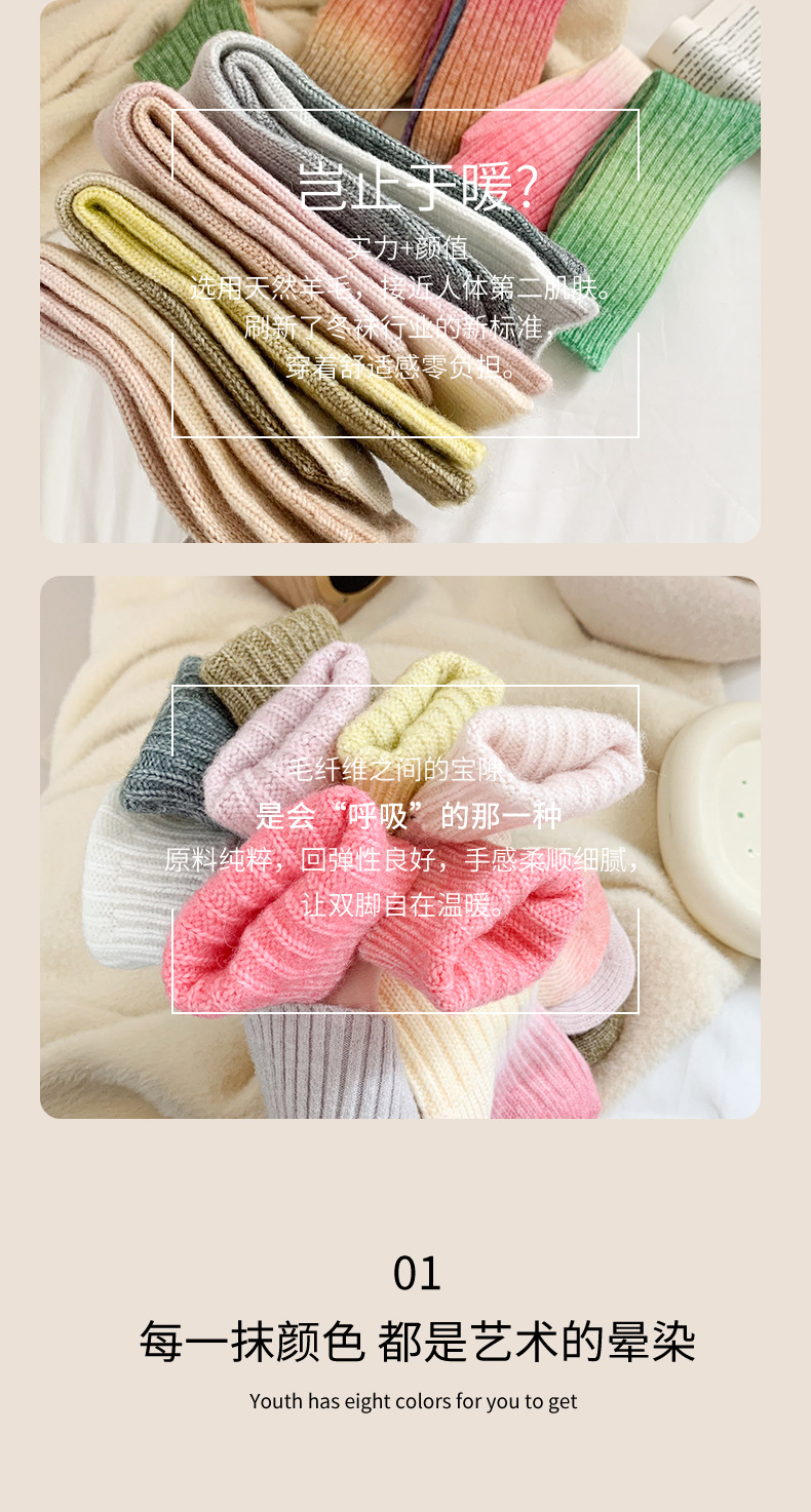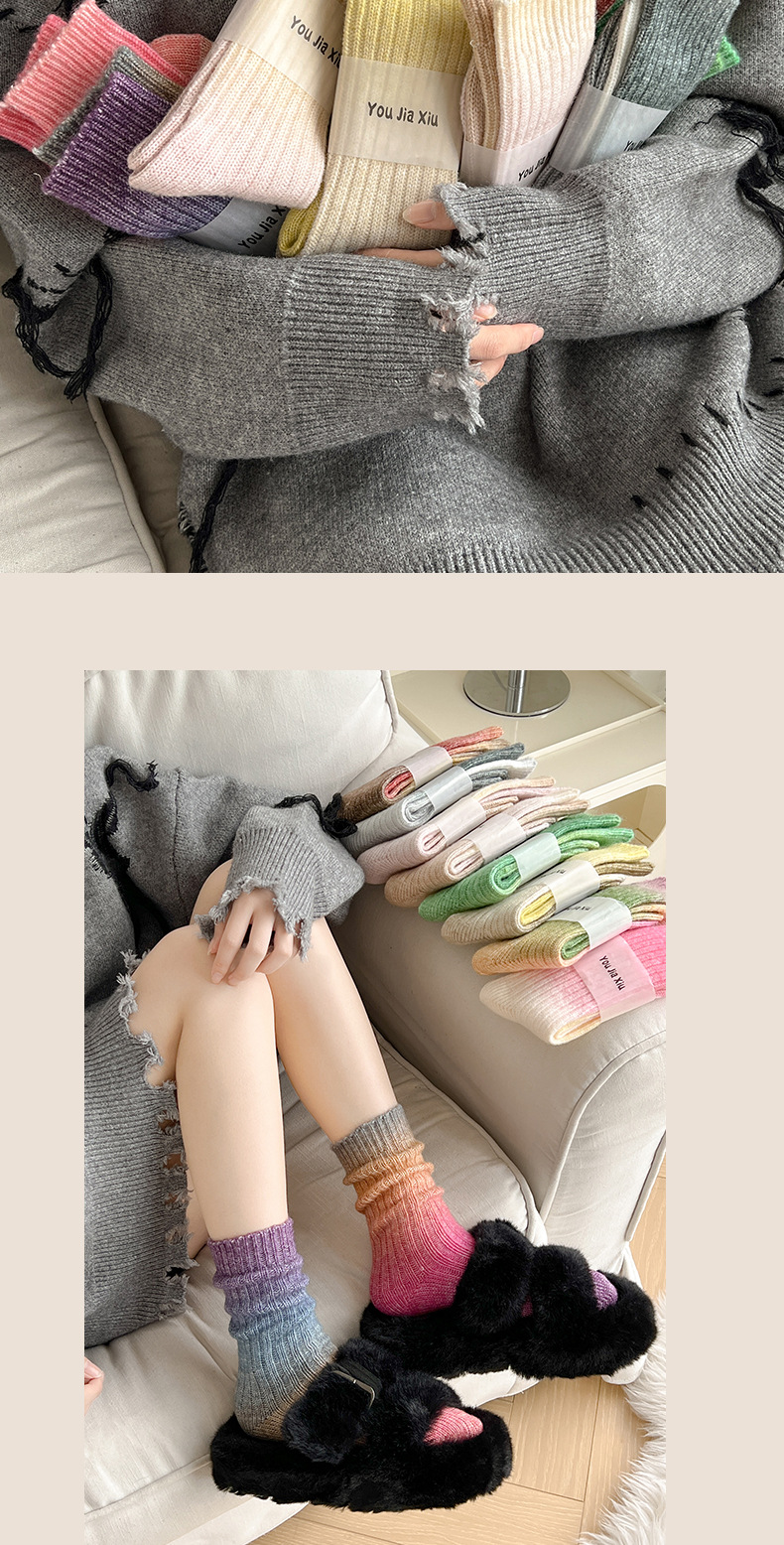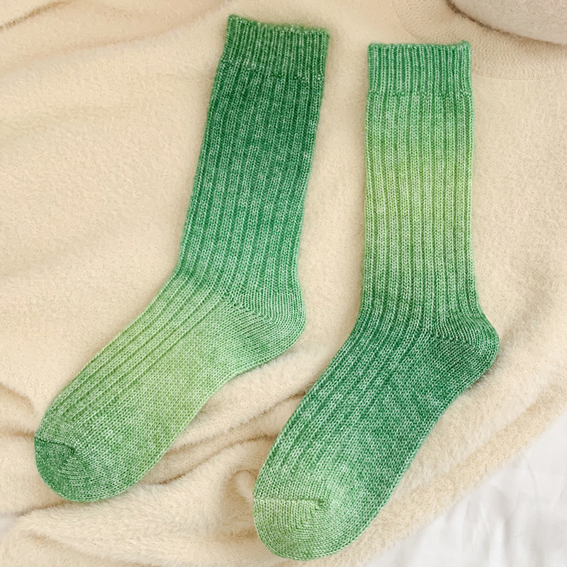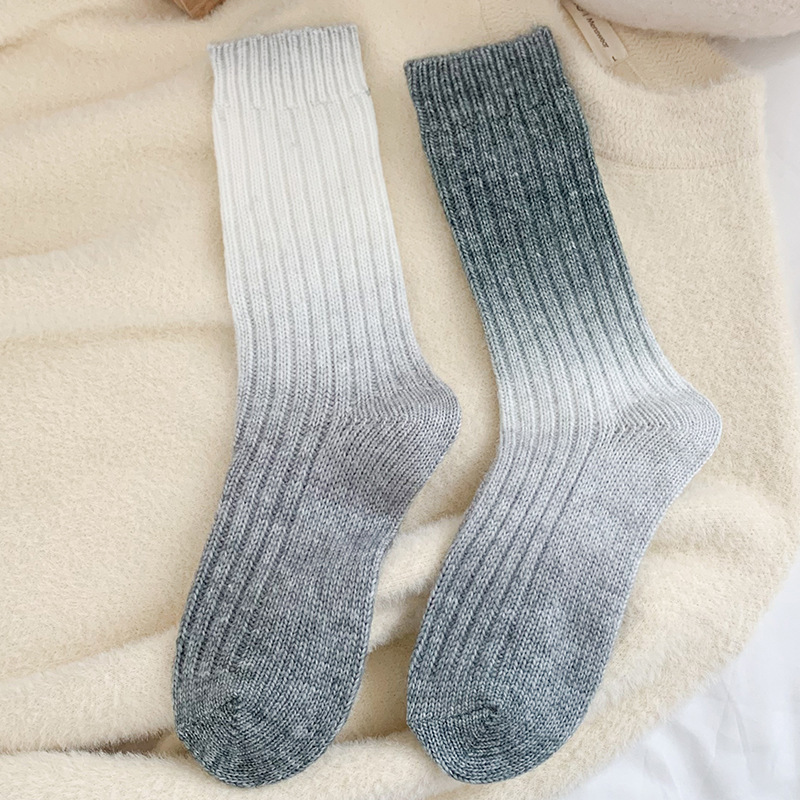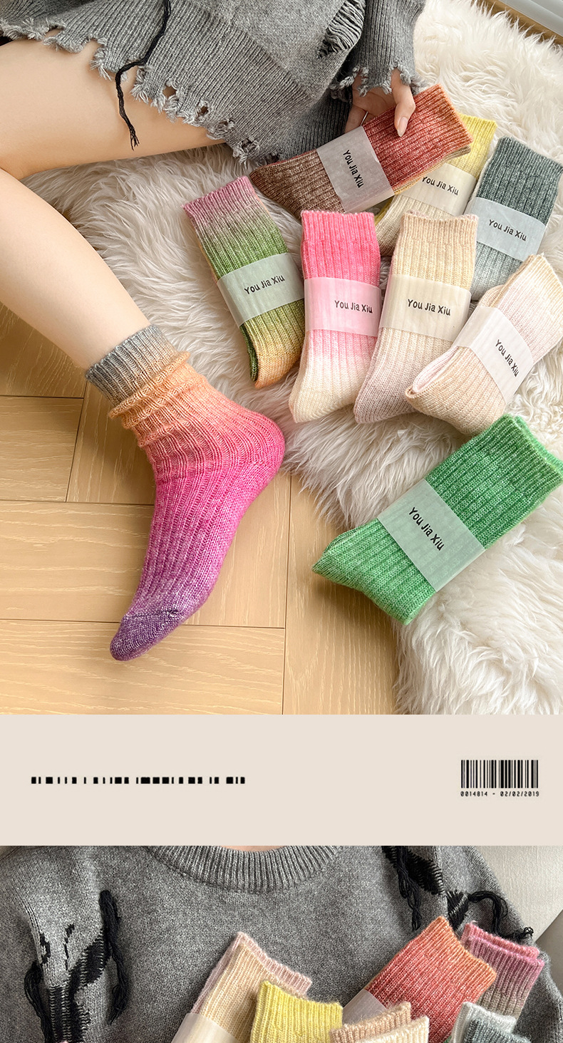그라디언트 컬러 울 양말 여성 스타킹 가을과 겨울 양모 양말 넥타이 염색 무작위 색상 매칭 두꺼운 라인 트렌디 하이 양말스토어 가기