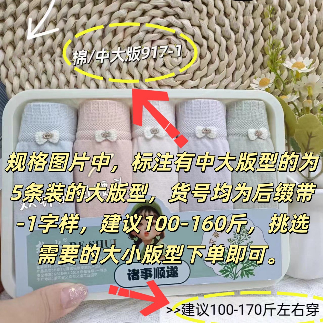 5条盒装内裤里少女版型、正常版型、中大版型均为5条装,另外加肥加大版为4条装,请按照需要的版型下单