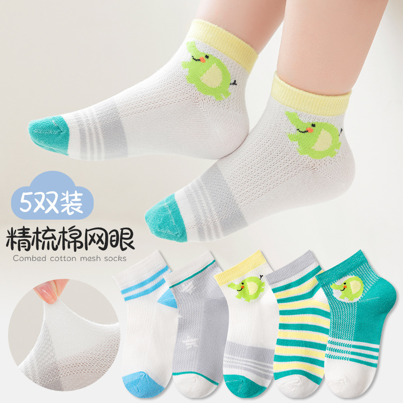 베노 어린이 양말 초박형 여름 메쉬 양말 통기성 땀 흡수성 아기 소년 학생 만화 공룡 양말 도매
