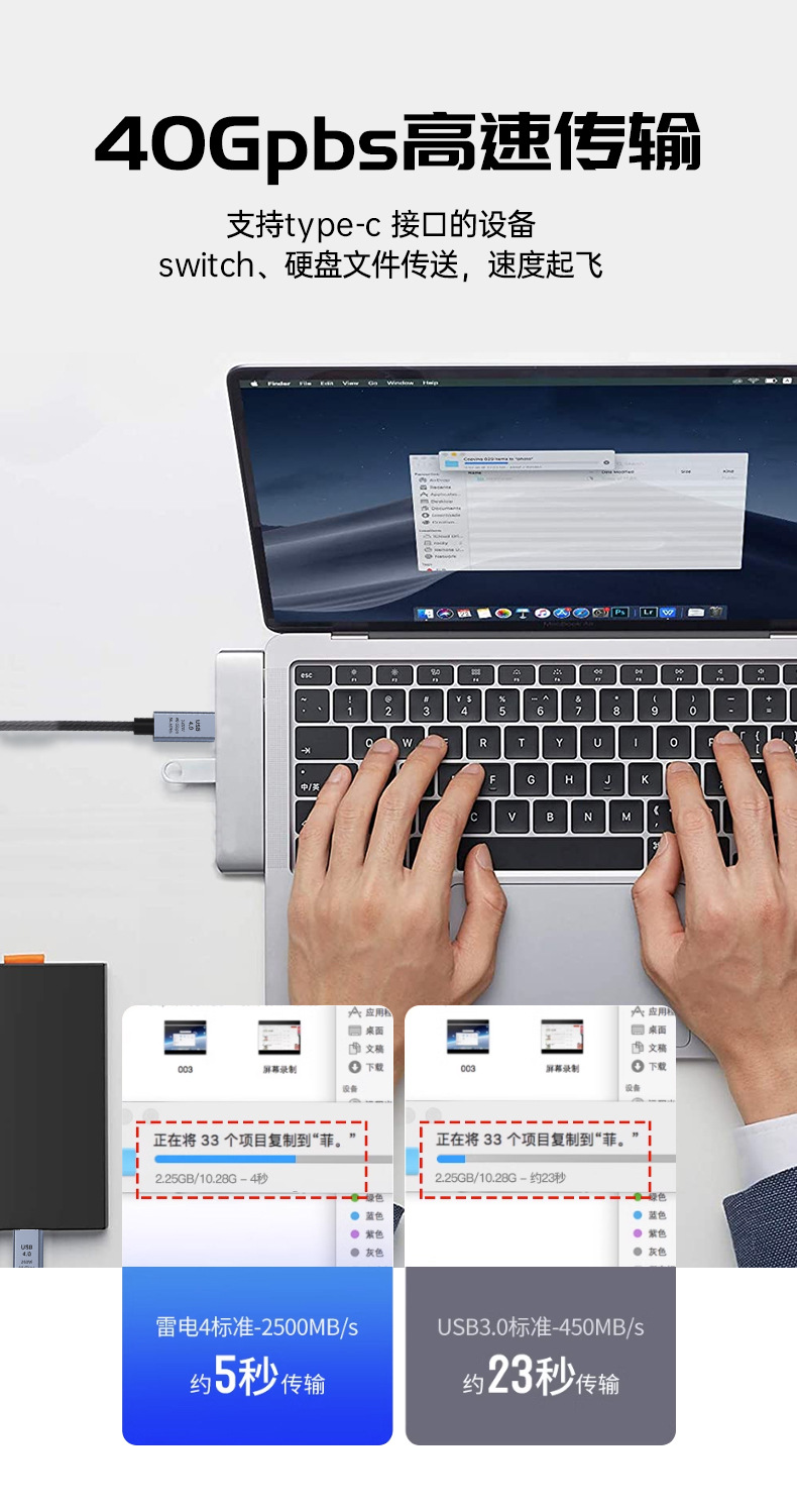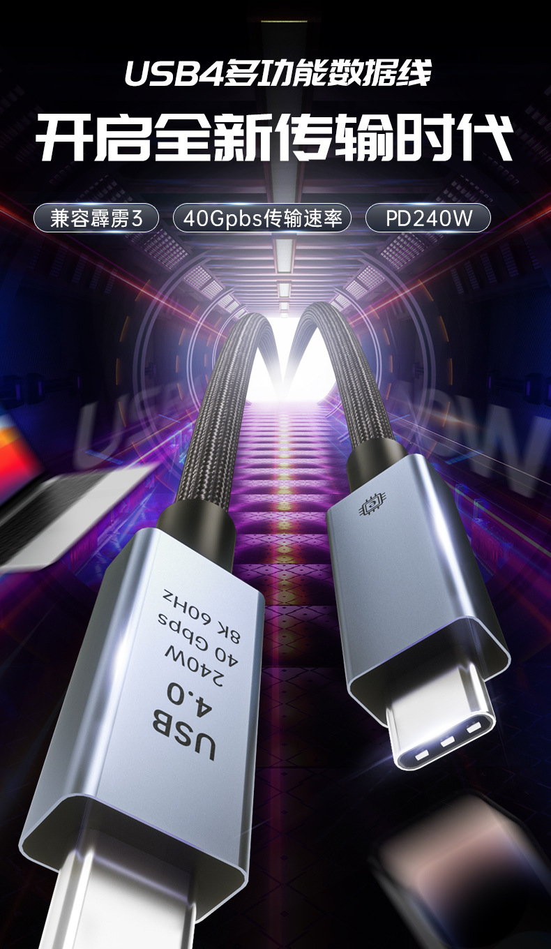 번개 40Gbps 전송 8k60Hz 비디오 240w 빠른 충전 라인과 호환되는 USB4 데이터 라인 typec 전체 기능