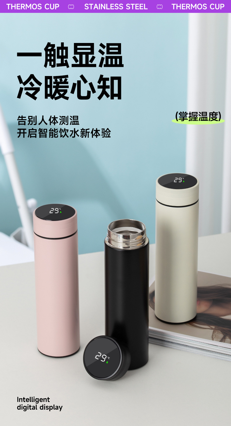 스마트 온도 표시 보온병 포켓컵 스테인리스 컵 직선형 컵 고급스러운 남녀 비즈니스 보온병 선물 맞춤 제작스토어 가기