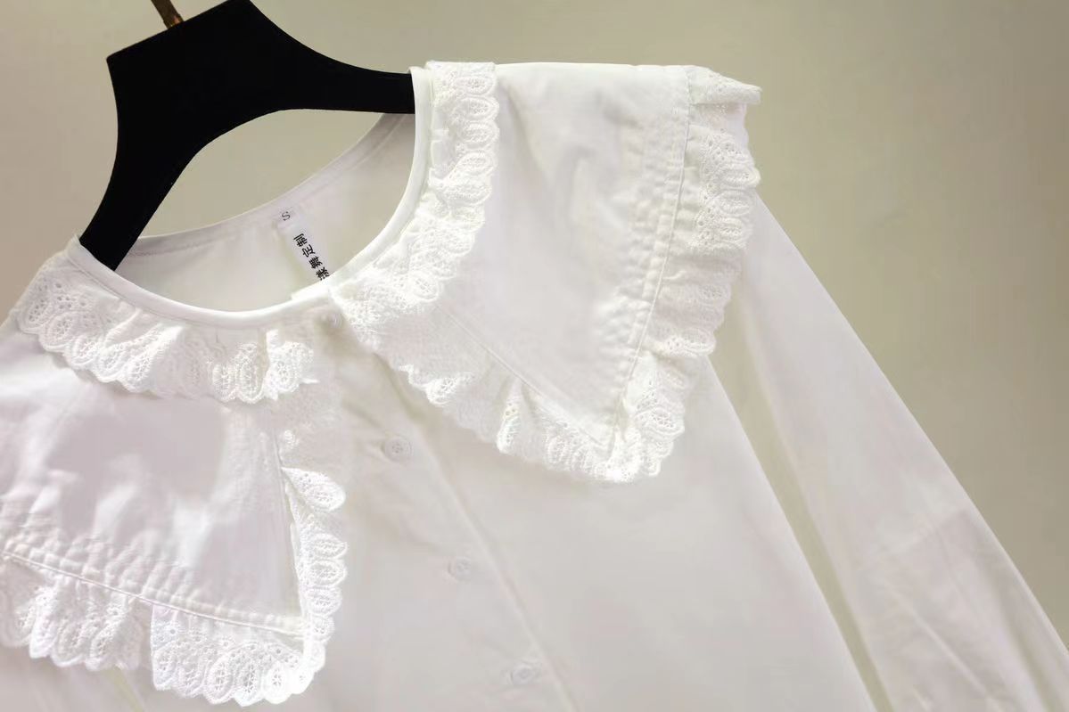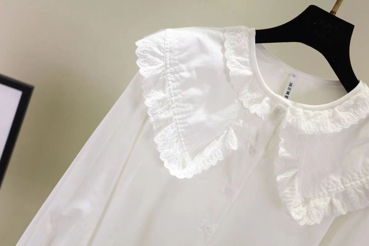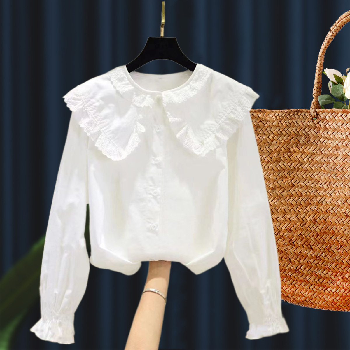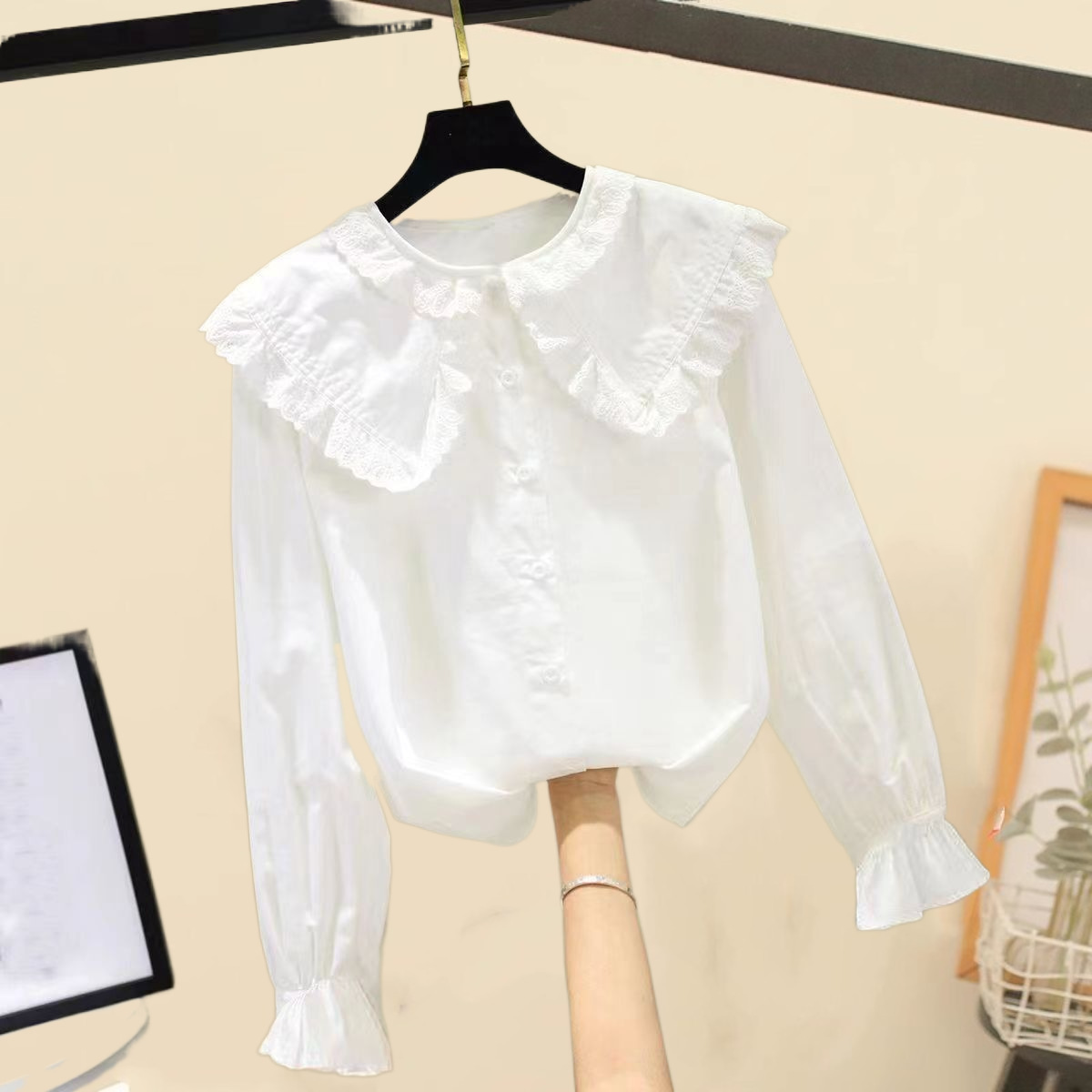 2024 새로운 아동복 소녀 큰 어린이 면 캐주얼 긴 소매 셔츠 대외 무역 소녀 옷깃 공주 셔츠스토어 가기