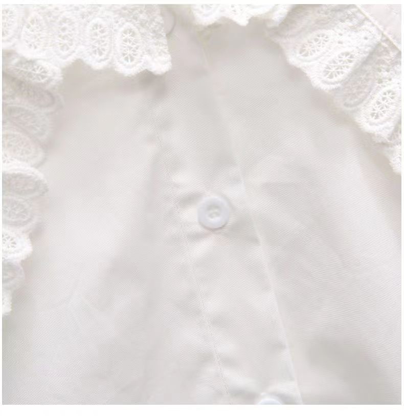 2024 새로운 아동복 소녀 큰 어린이 면 캐주얼 긴 소매 셔츠 대외 무역 소녀 옷깃 공주 셔츠
