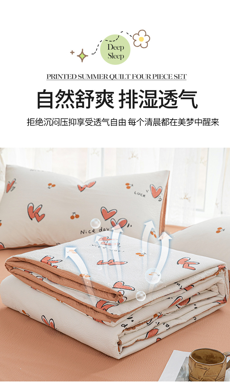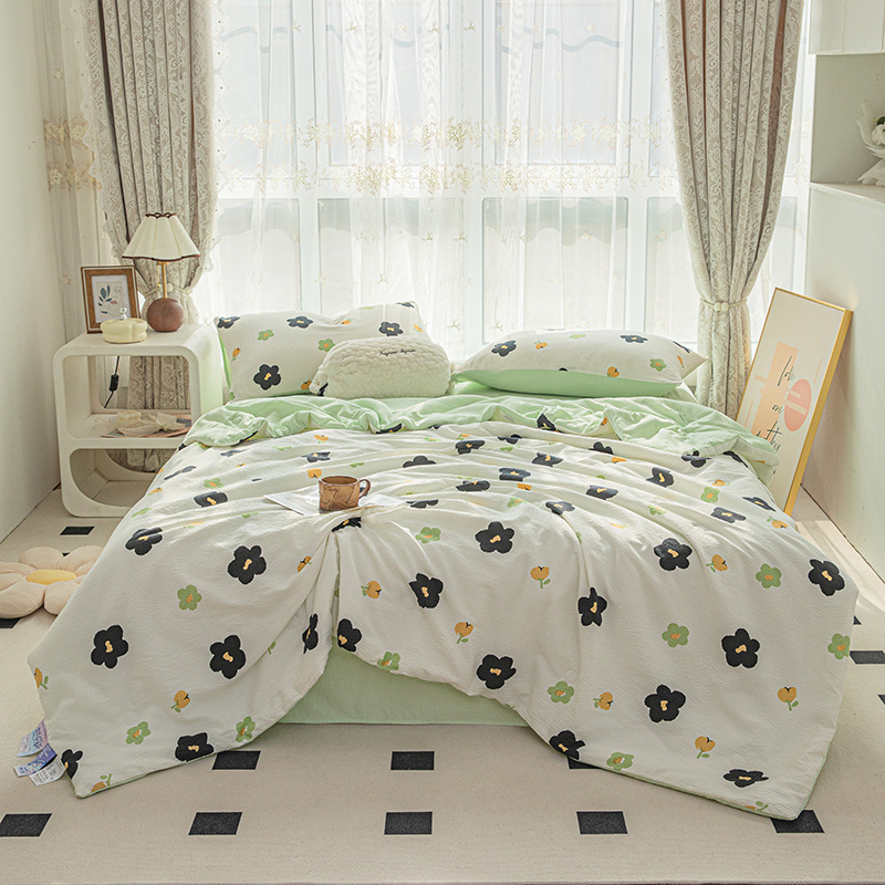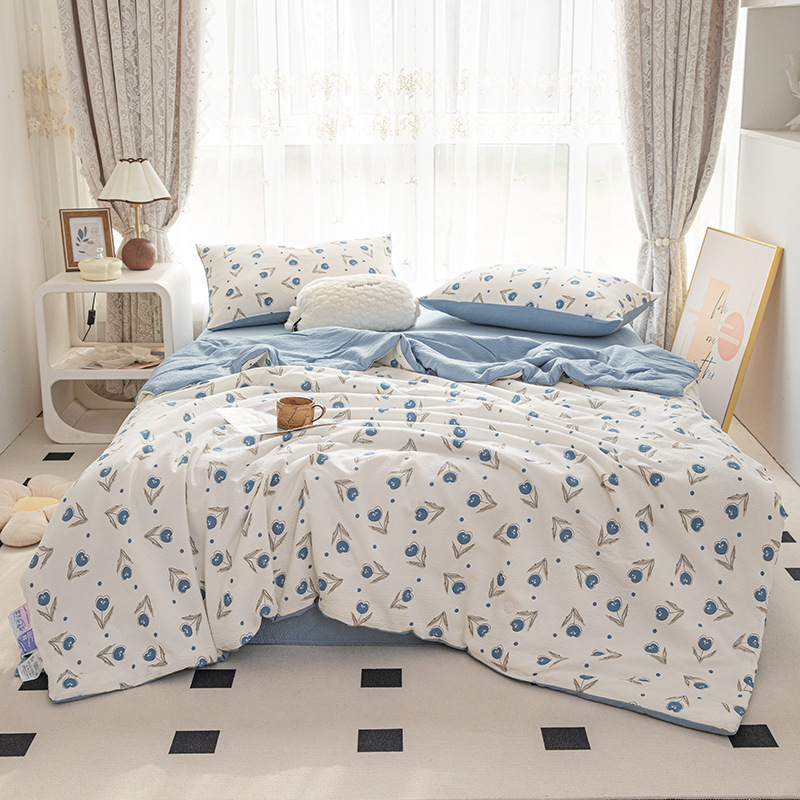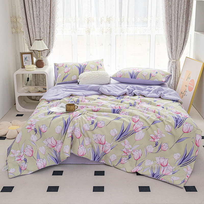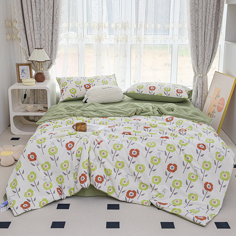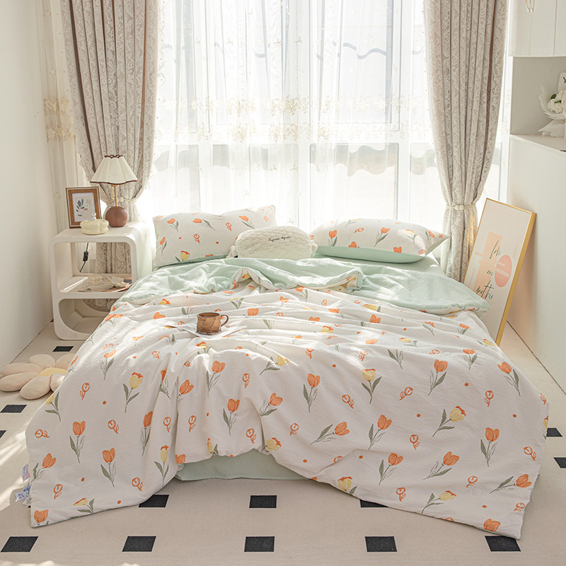 24 여름 새로운 버블 코튼 여름 시원한 이불 시원한 실크 여름 이불 4 종 세트 싱글 여름 이불 에어컨 이불 세탁 가능한 여름 이불