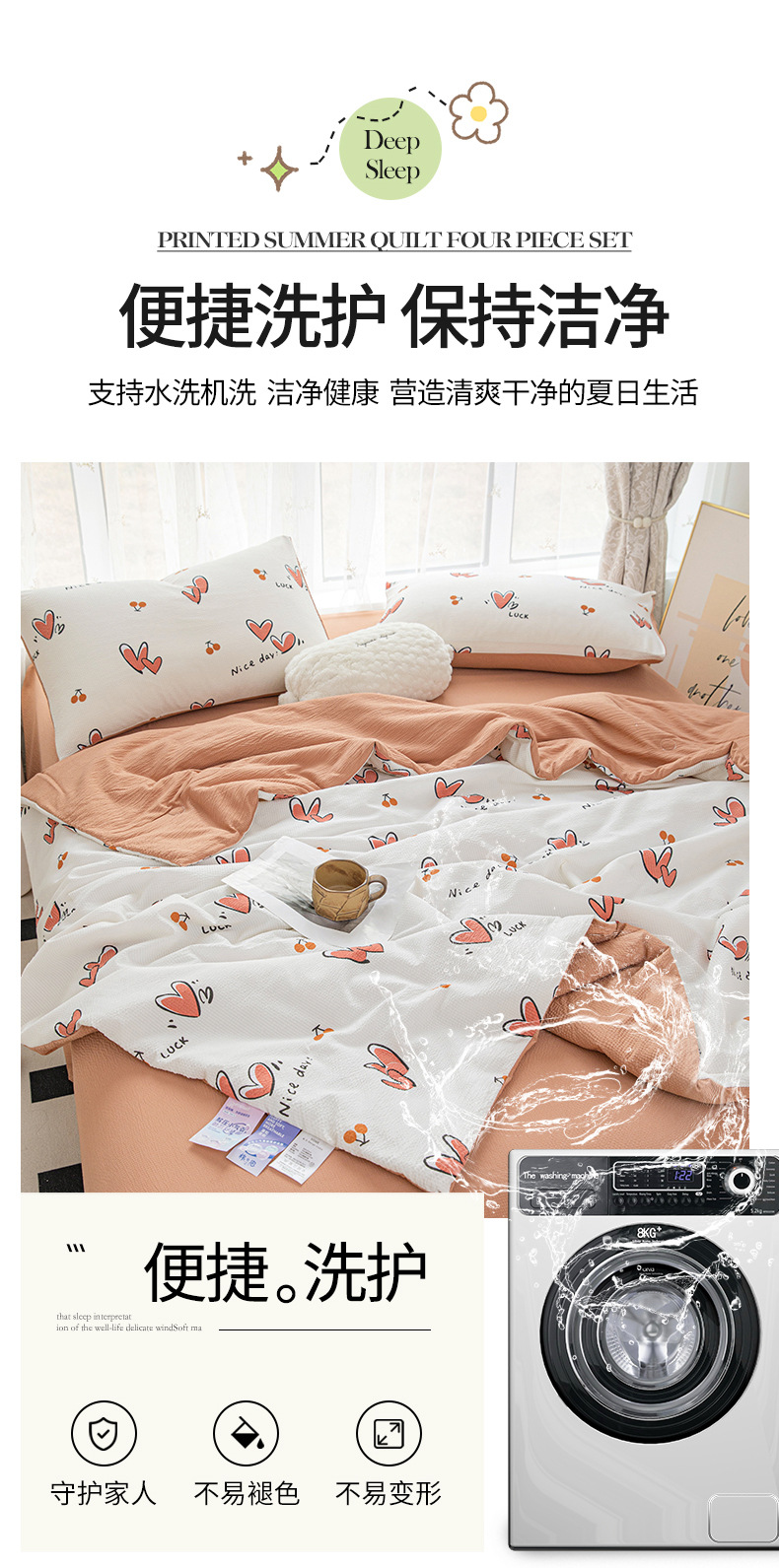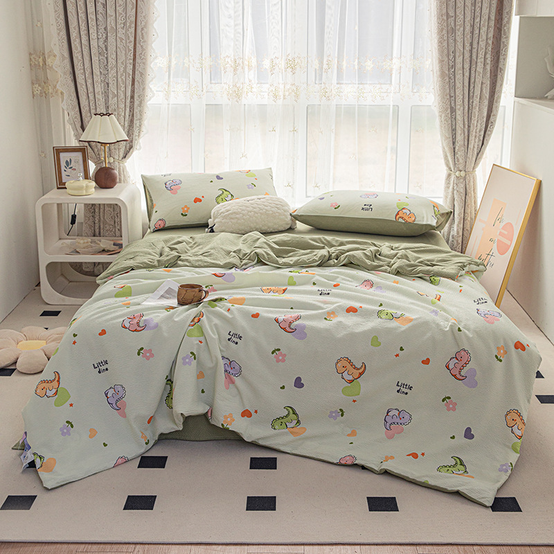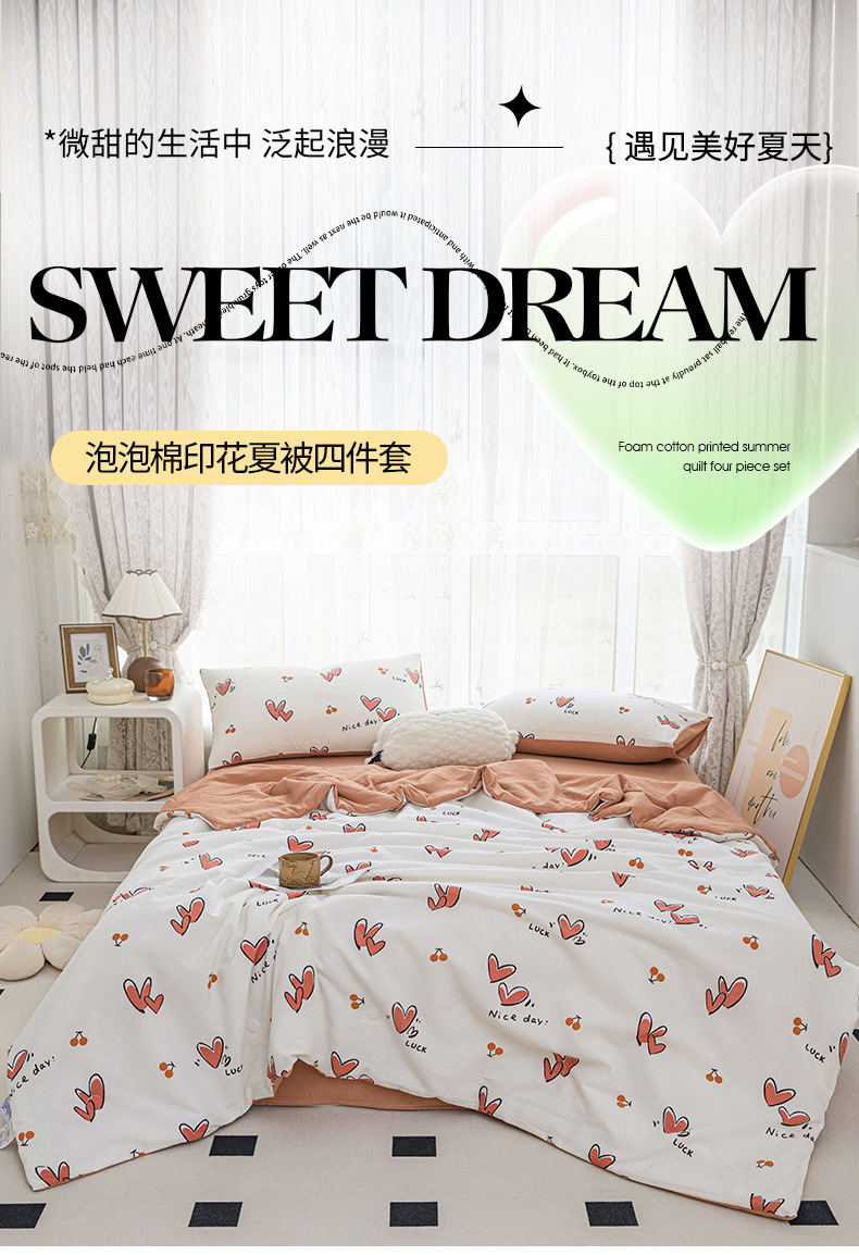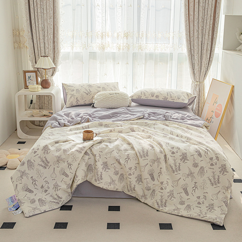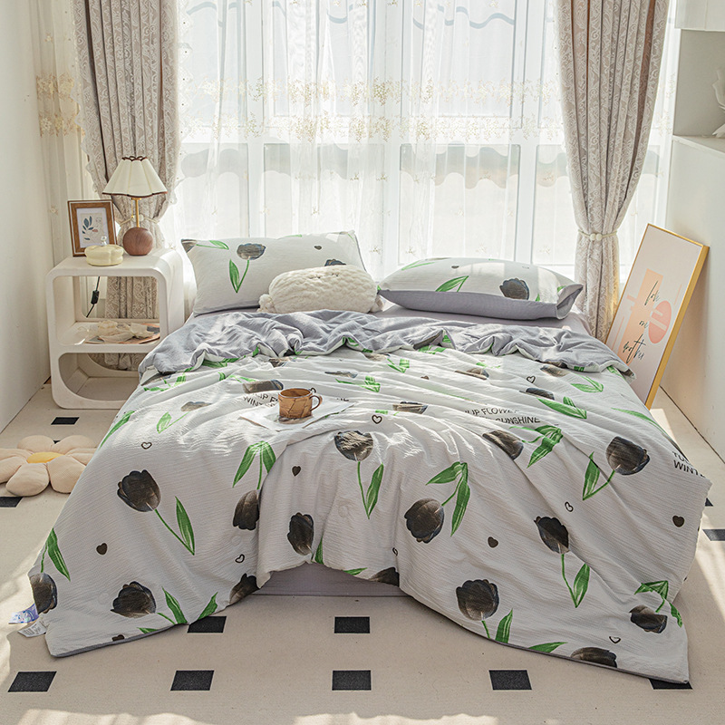 24 여름 새로운 버블 코튼 여름 시원한 이불 시원한 실크 여름 이불 4 종 세트 싱글 여름 이불 에어컨 이불 세탁 가능한 여름 이불