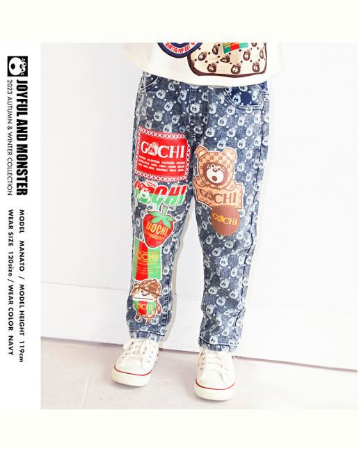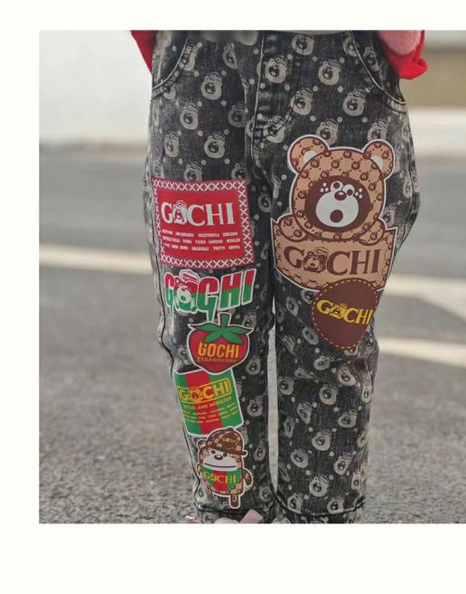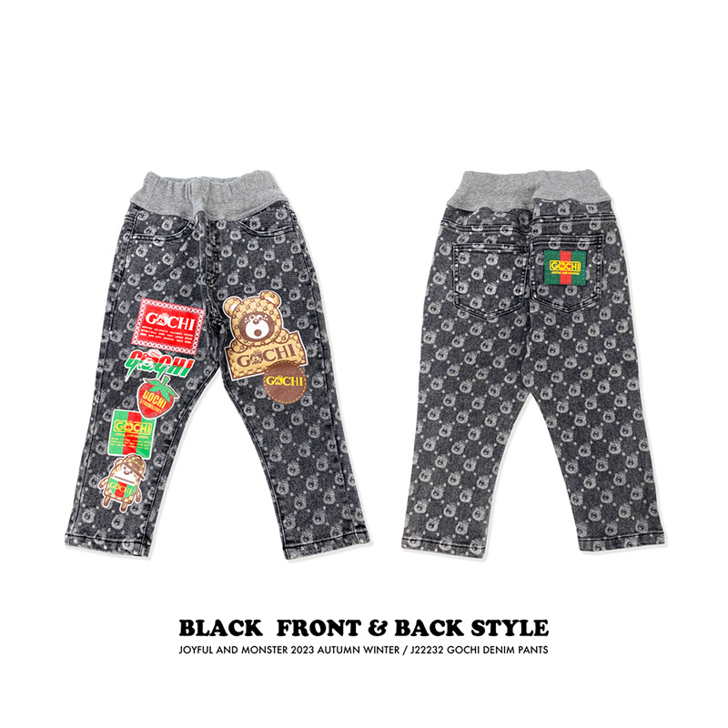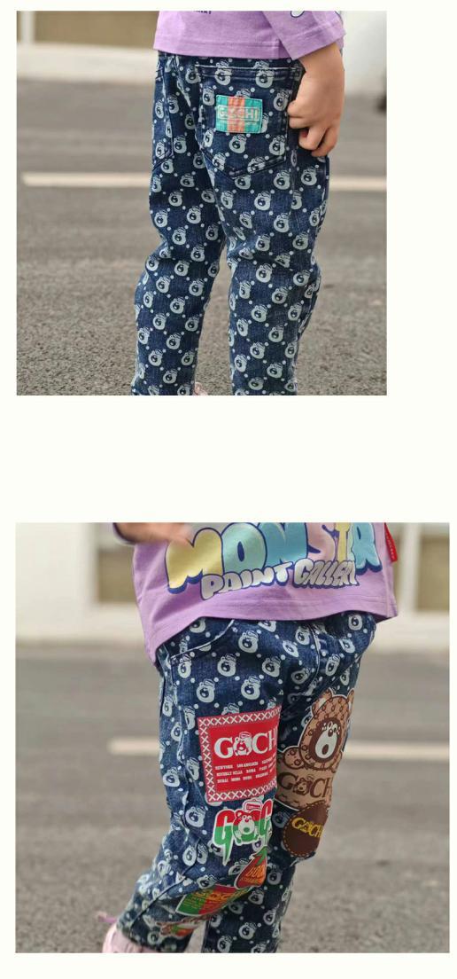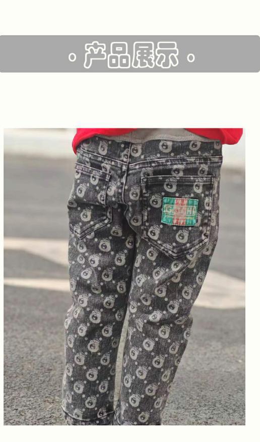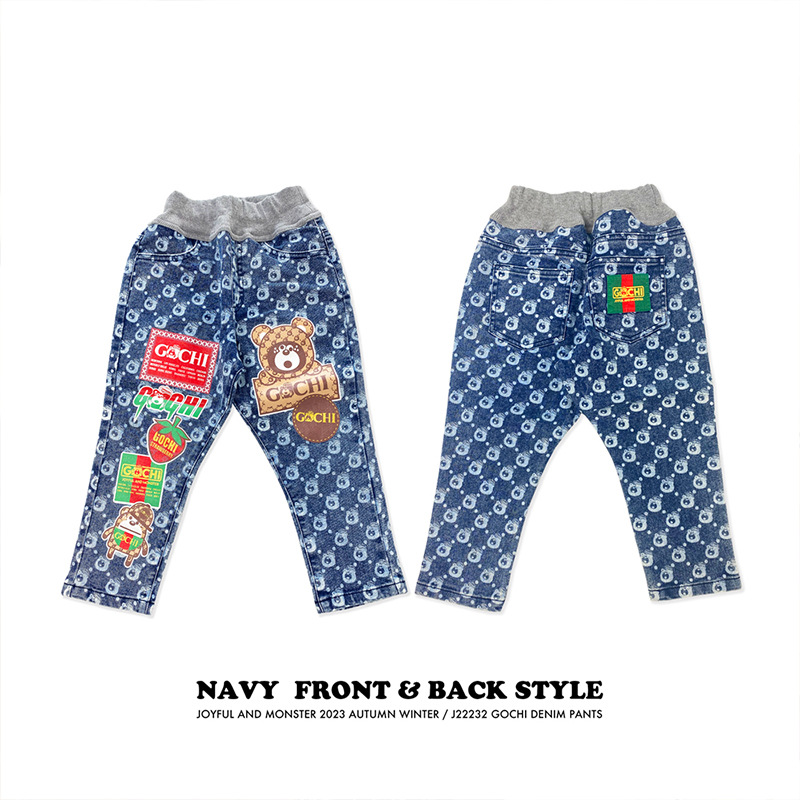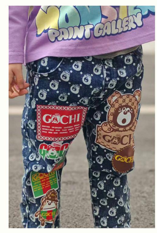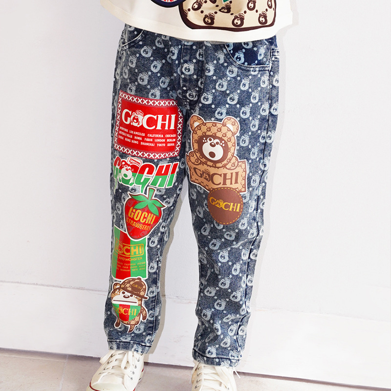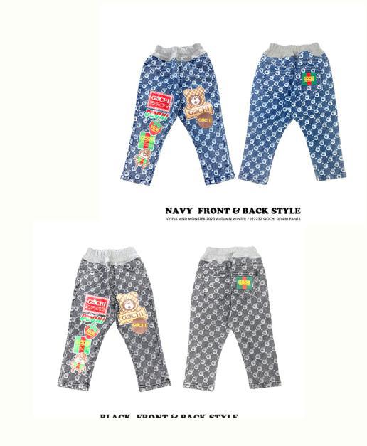 재고 2024 봄 새로운 잼 소년 소녀를위한 어린이 청바지 전체 인쇄 곰 데님 바지스토어 가기