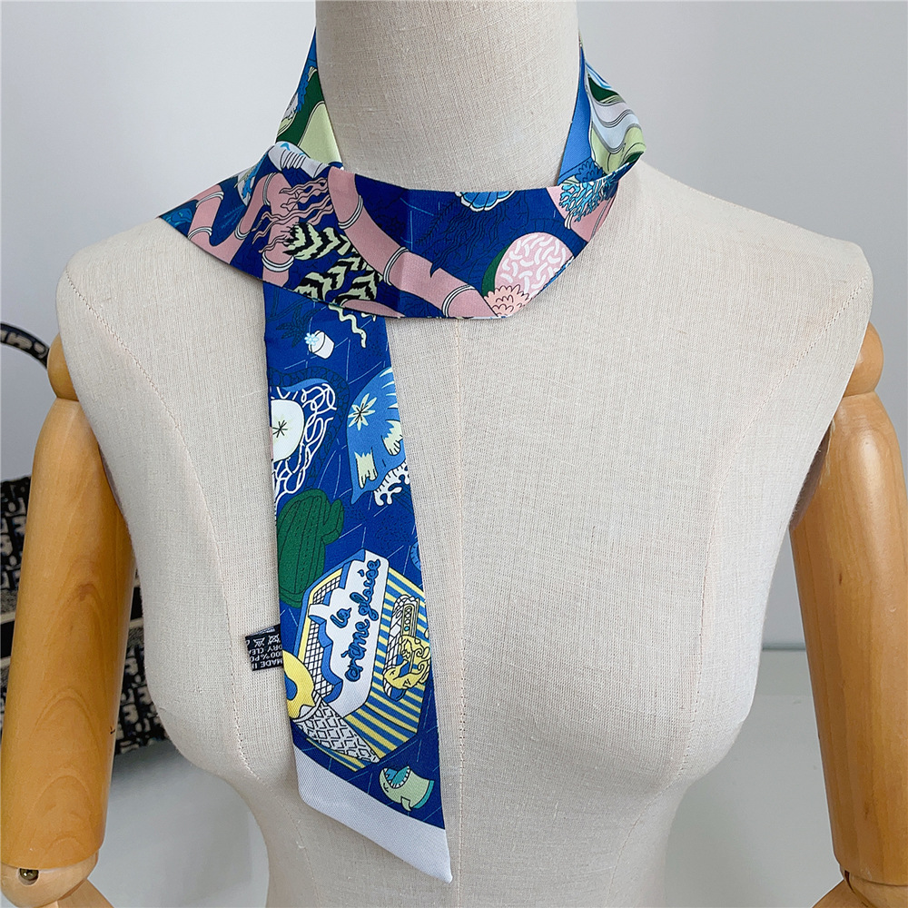 프랑스 패션 새로운 수중 세계 트윌 실크 여성 장식 와인딩 백 리본 스카프 작은 스카프