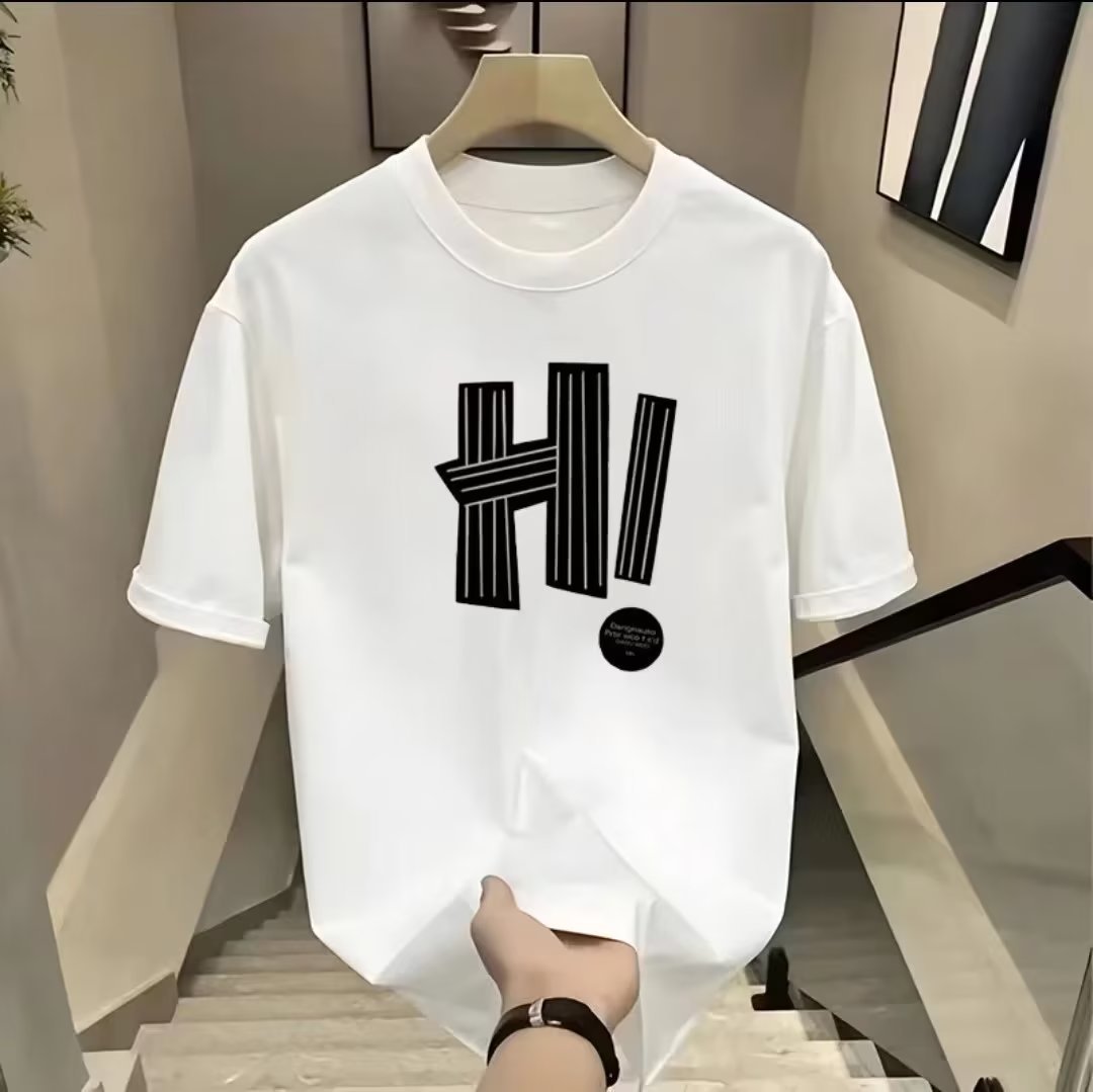 편지 반팔 티셔츠 남자의 여름 무거운 느슨한 십대 크루 넥 옷 유행 브랜드 2024 새로운 스타일스토어 가기