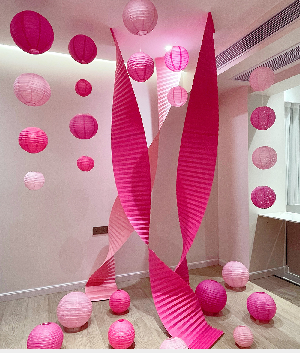 • 4 m 종이 접기 3 개 (2 로즈 레드 + 핑크 1)