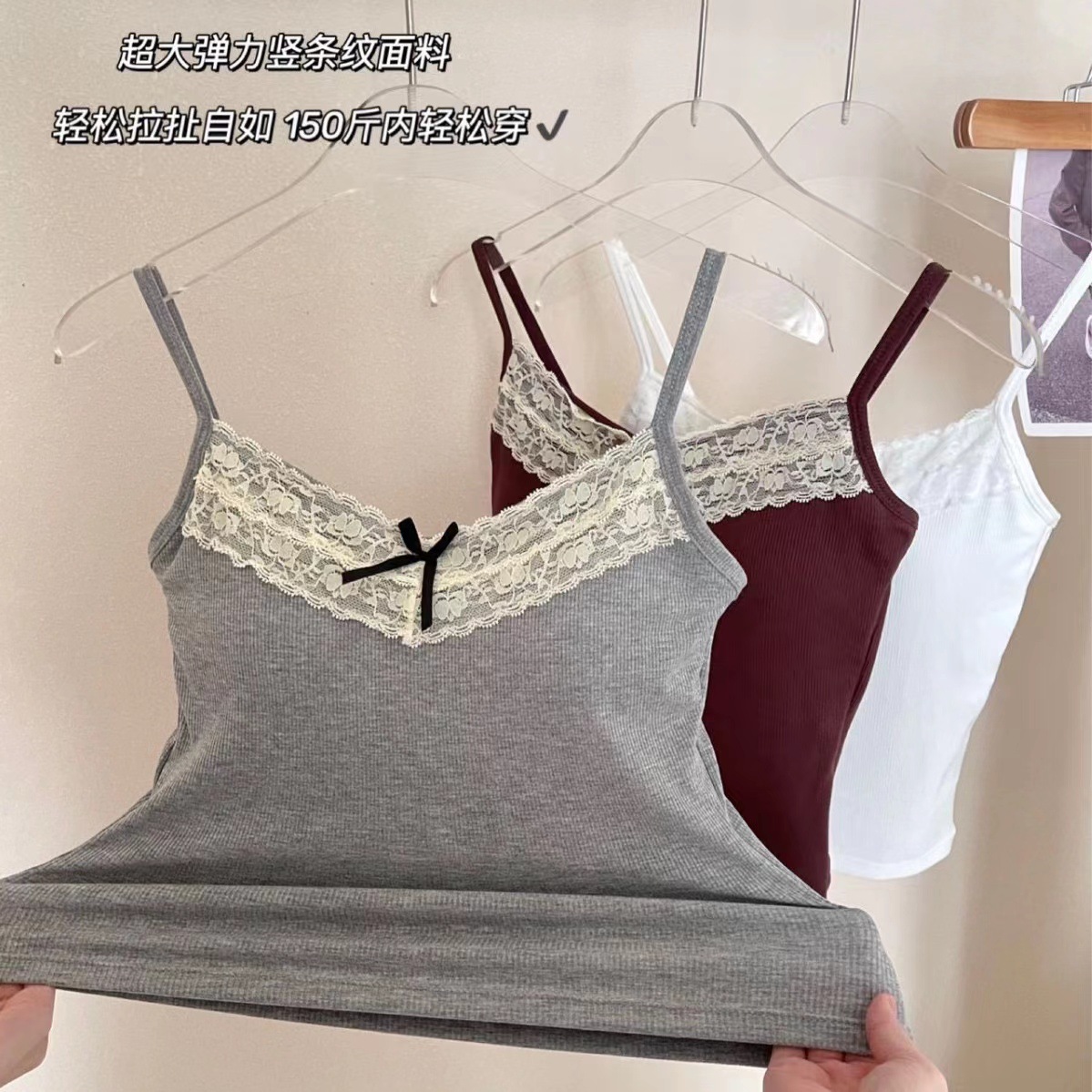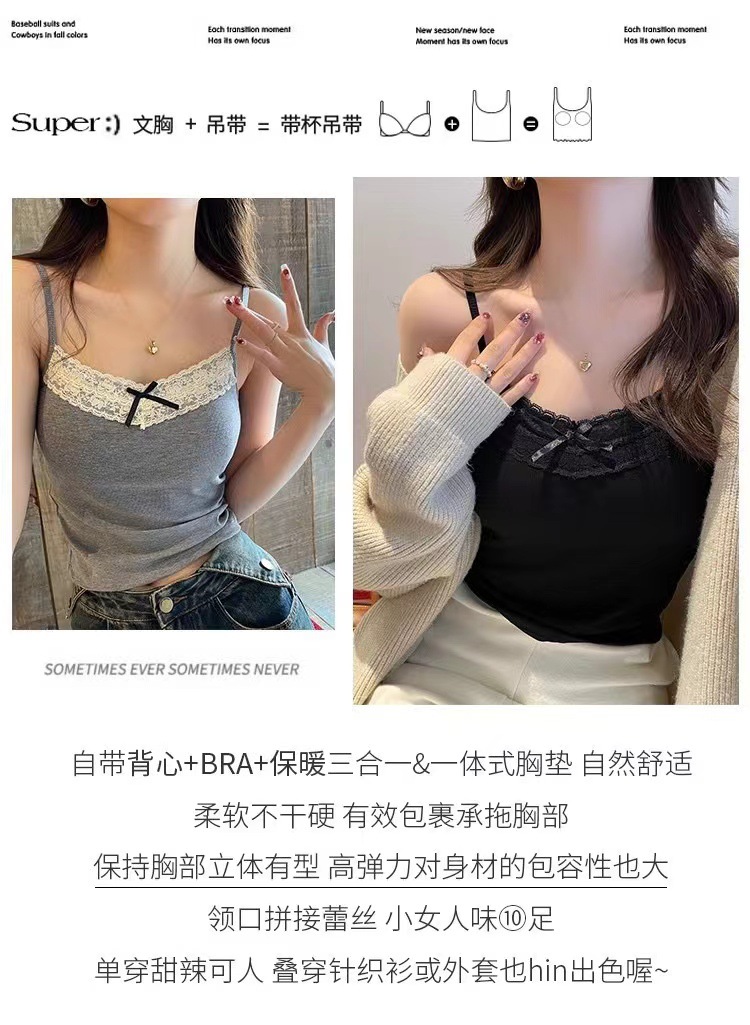 가슴 패드 달콤한 뜨거운 소녀 튜브 상단 타이트한 내부 쇼트가있는 봄과 여름 여성을위한 레이스 스트랩 바닥 최고 조끼스토어 가기