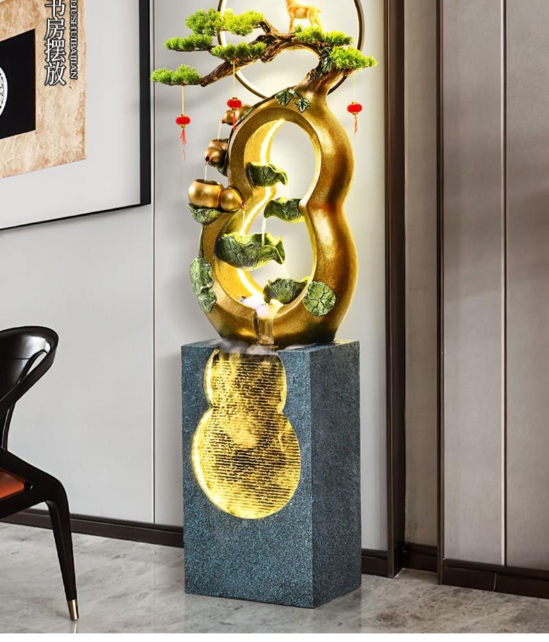 새로운 중국 스타일 행운의 조롱박 바닥 물 분수 장식 거실 TV 캐비닛 순환 물 풍경 오프닝 장식