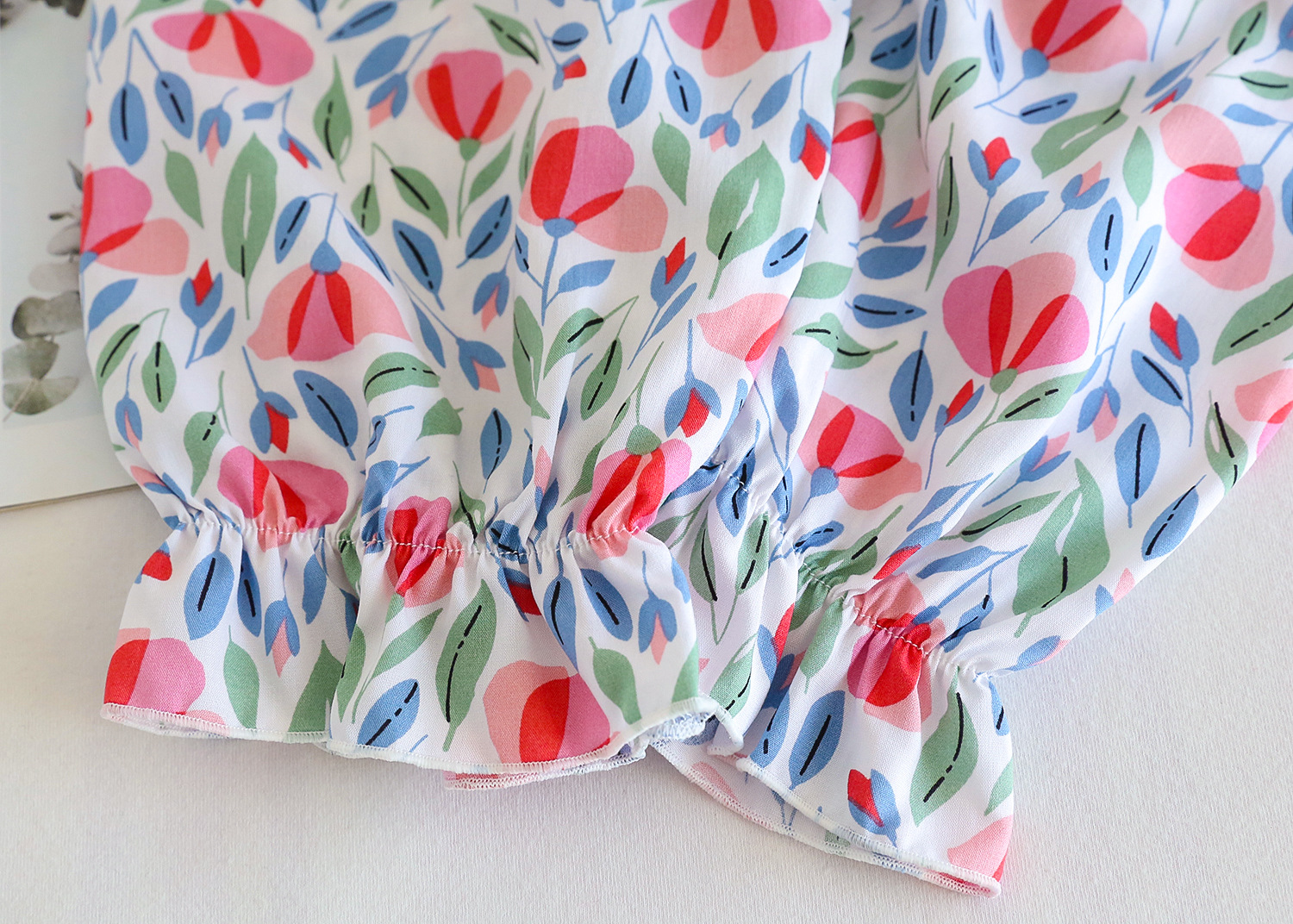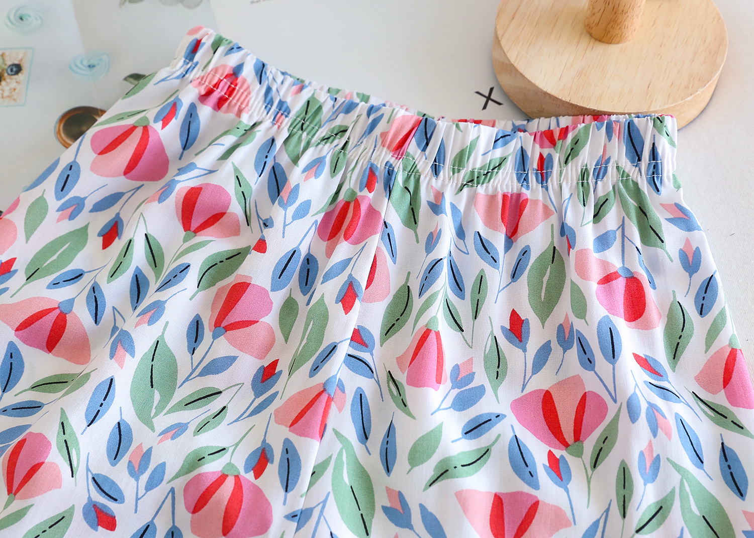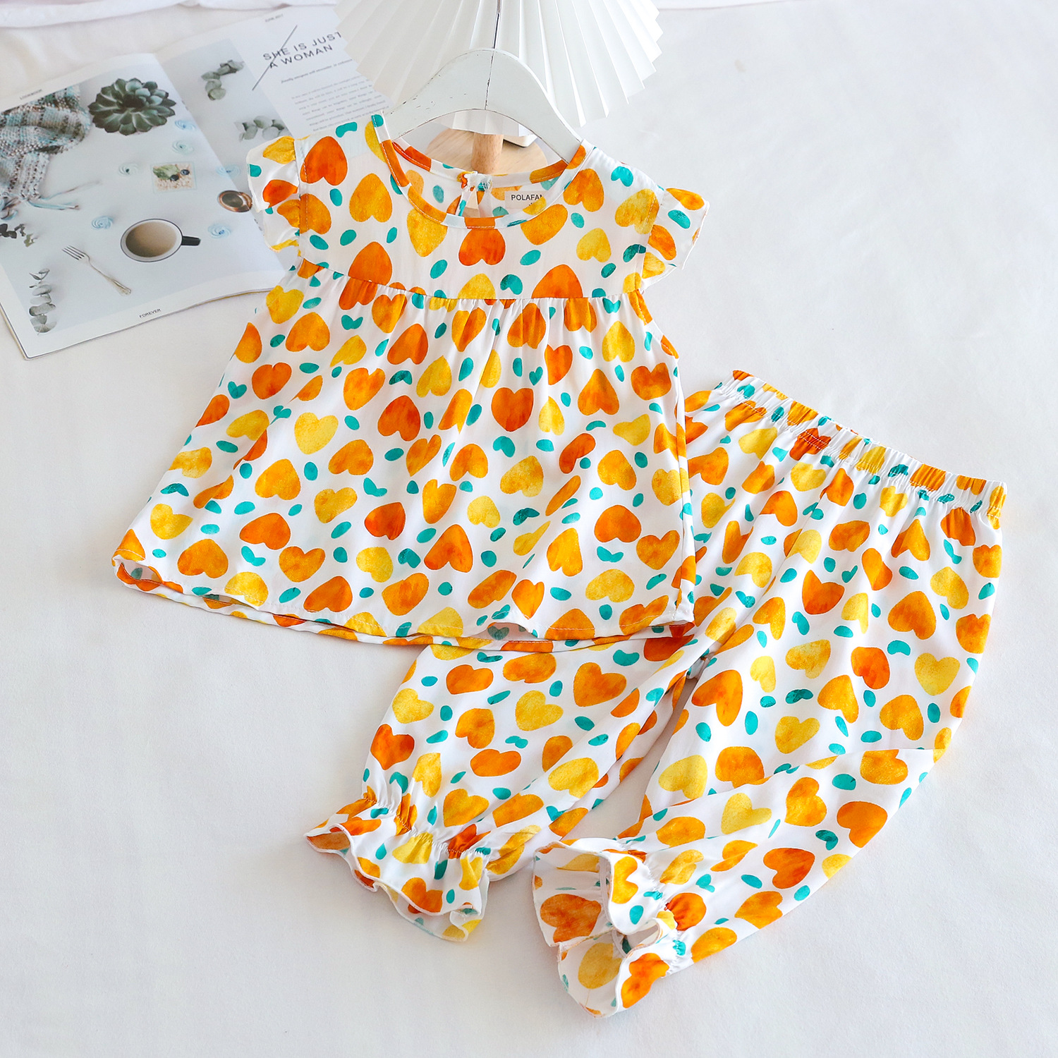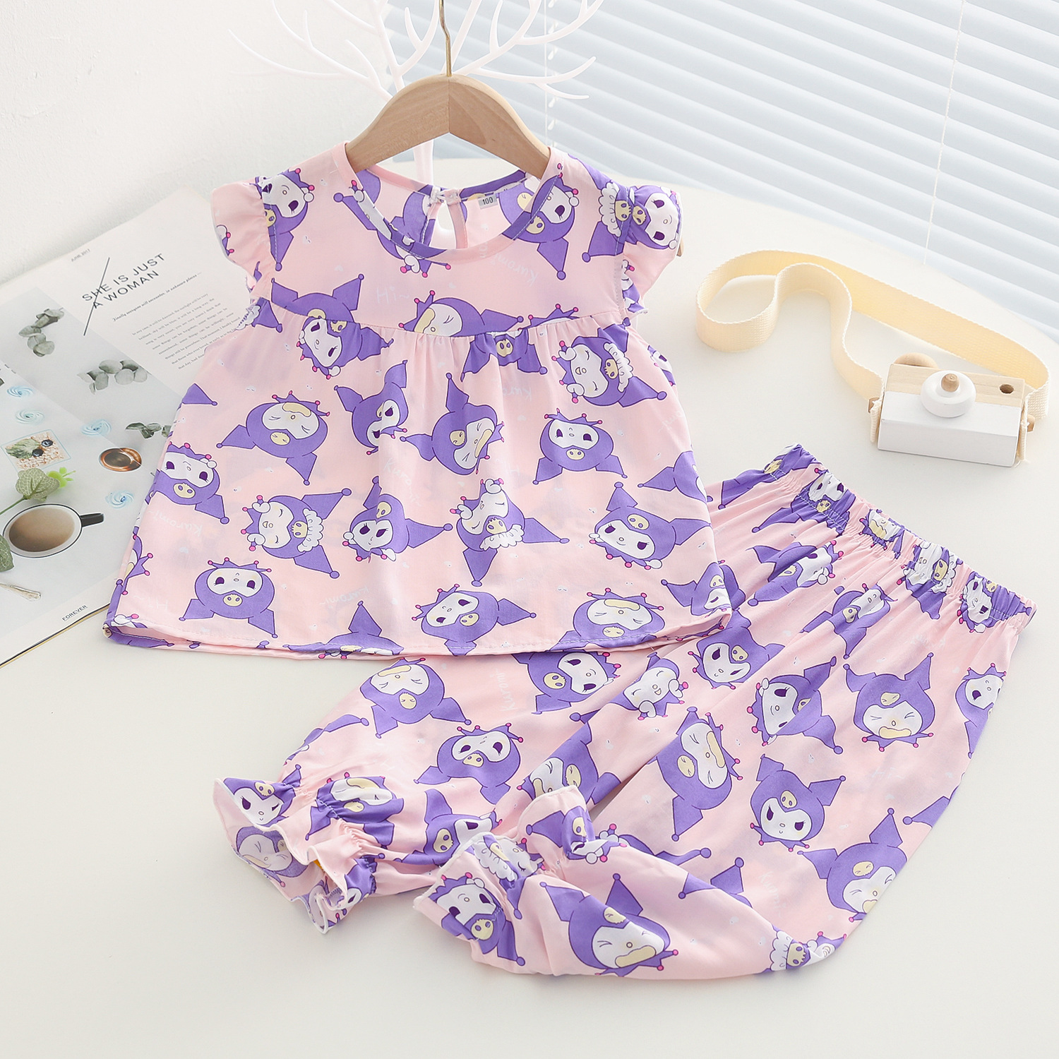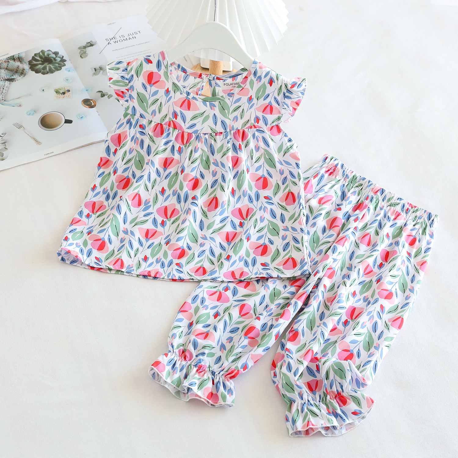 여름 소녀 인공 면화 세트 시원한 통기성 대외 무역 어린이 가정은 얇은 탑 모기 방지 바지면 실크 세트 착용