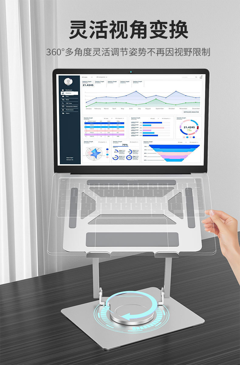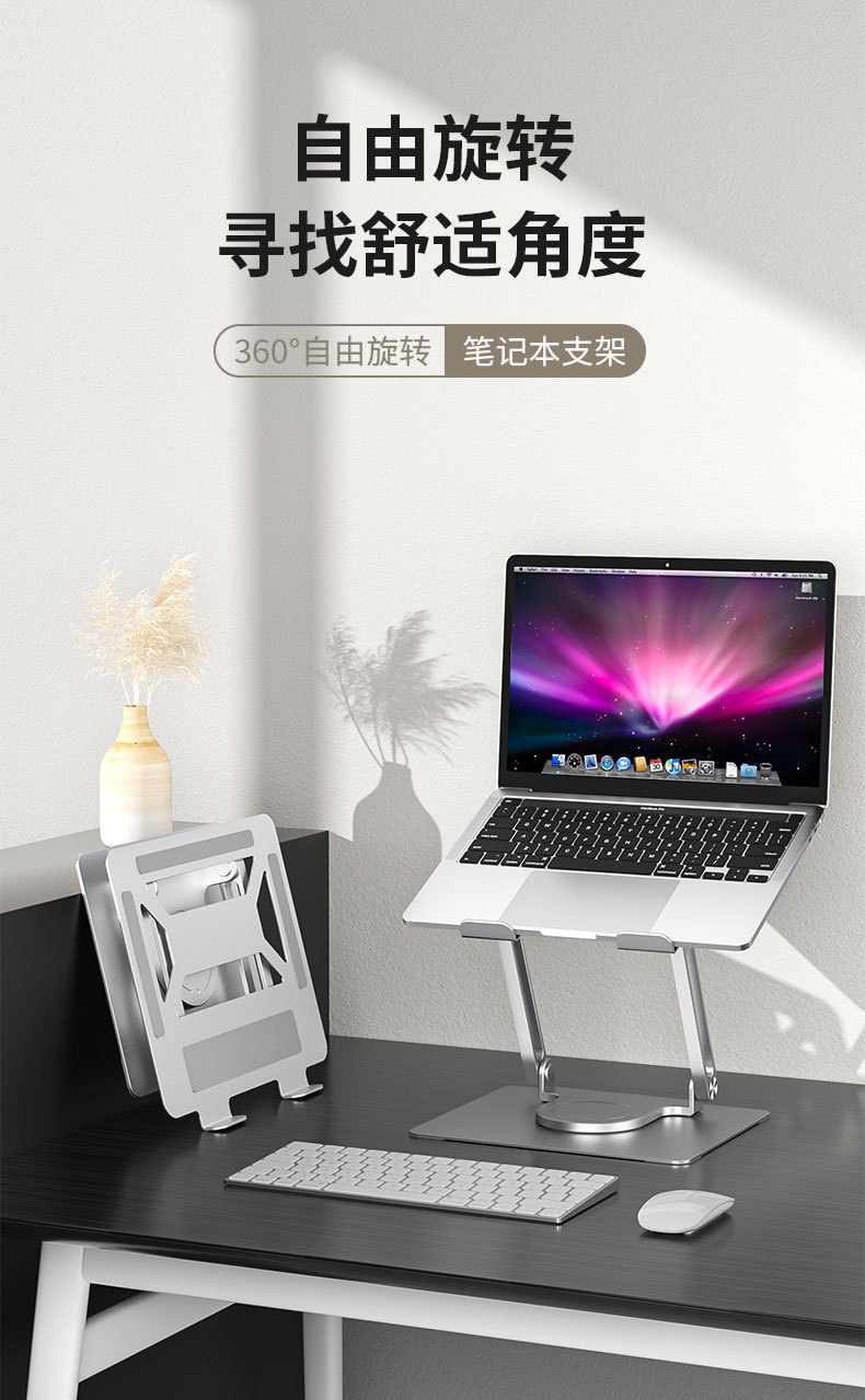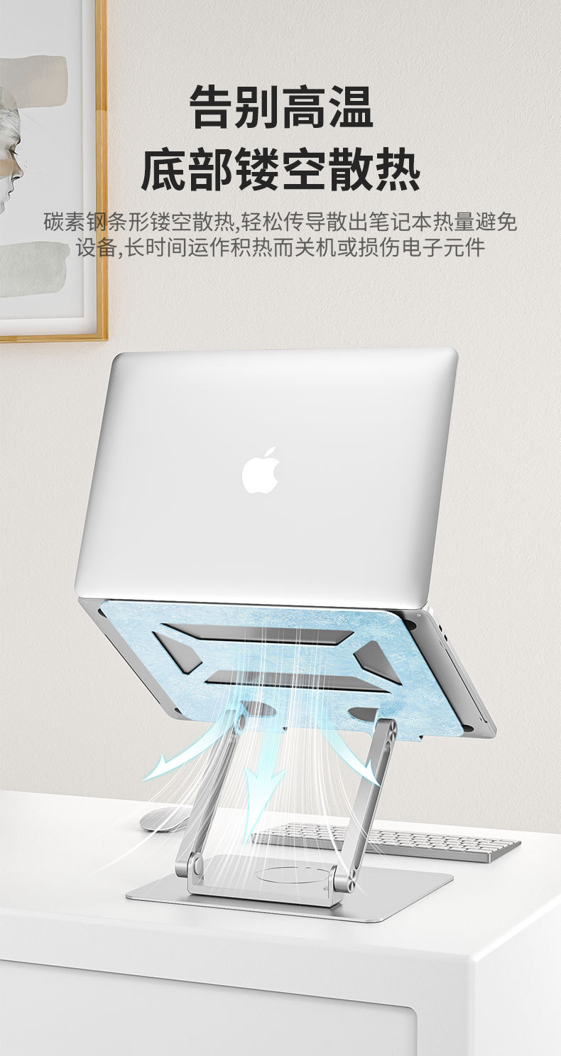 크로스보더 메탈 노트북 스탠드 360도 회전 접이식 냉각 스탠드형 데스크탑 높이 조절 태블릿 스탠드