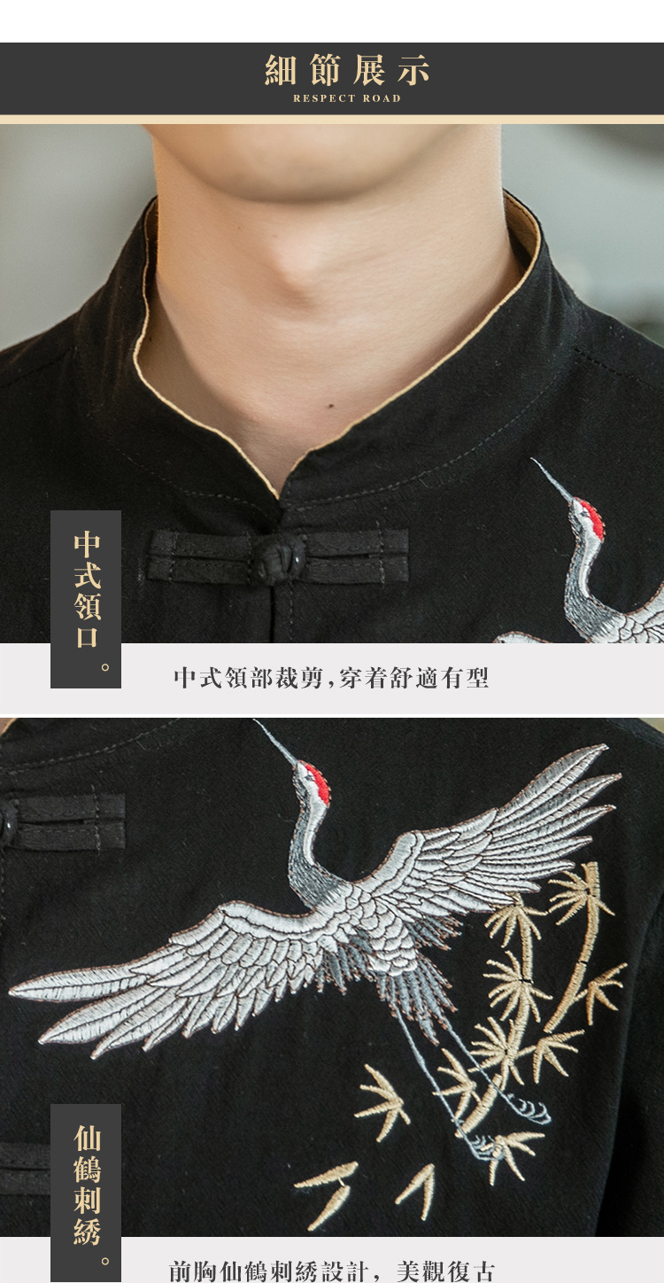 새로운 2024 트렌디 한 중국 스타일 셔츠 남성 여름 착용 비행 크레인 자수 대비 색상 길조 구름 남성 짧은 소매 캐주얼 셔츠스토어 가기