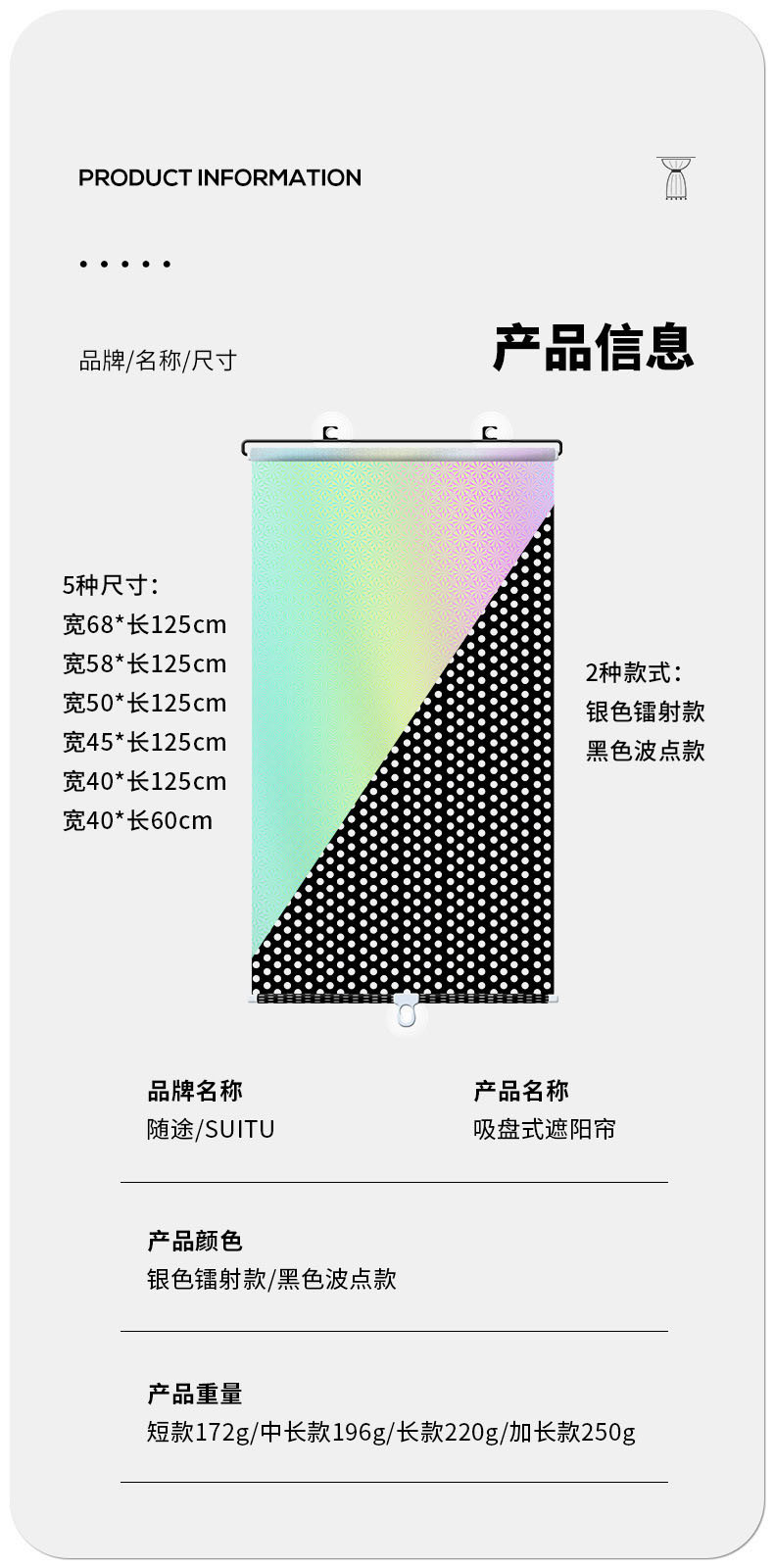 • 50*125 검은 물방울 점 (3 개의 흡입 컵 포함)